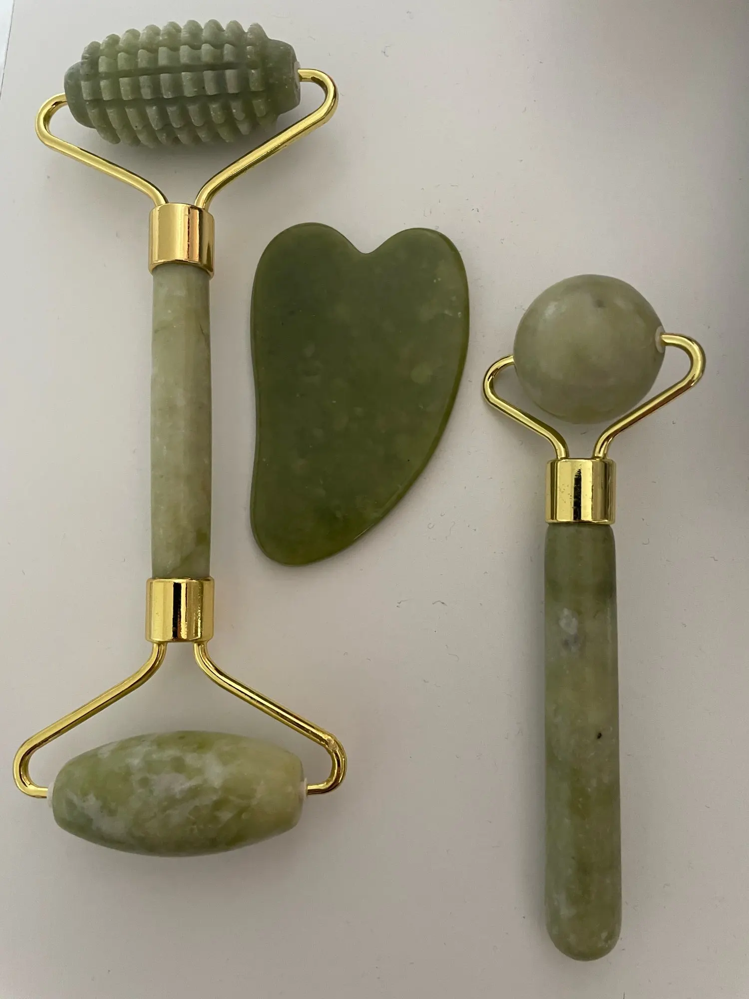 3pcs Set Jade Roller Massager for Face Body Gua Sha Jade Stone Face Care Roller Facial Massager Beauty Health Skin Care Tools
