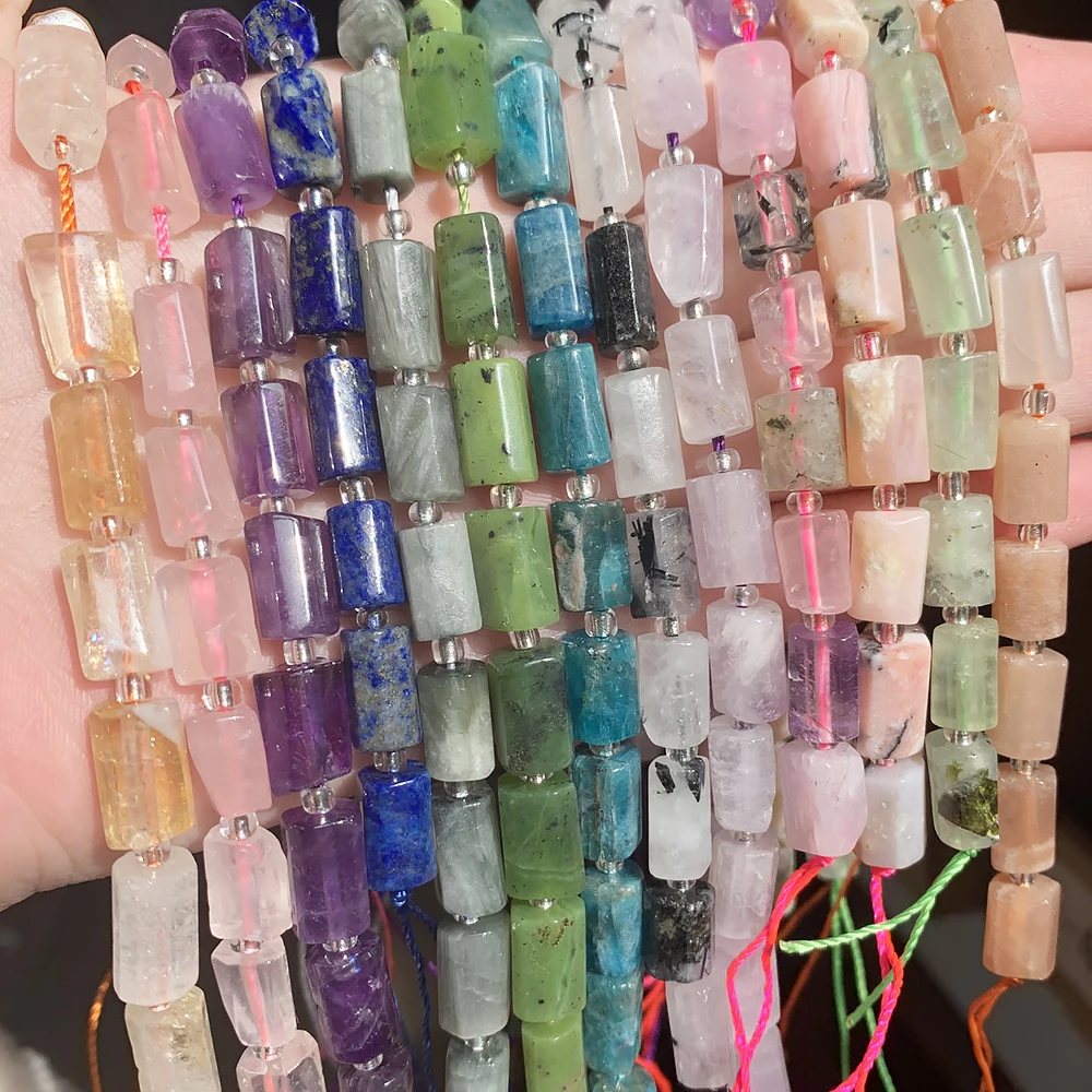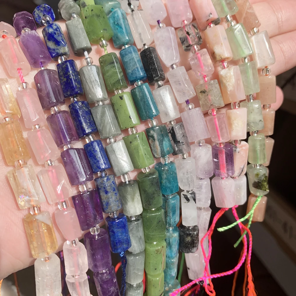 8x11mm Natural Faceted Gem Apatite Quartz Aquamarines Jades Stone Cylinder Loose Beads For Jewelry Making DIY Bracelets 7.5''