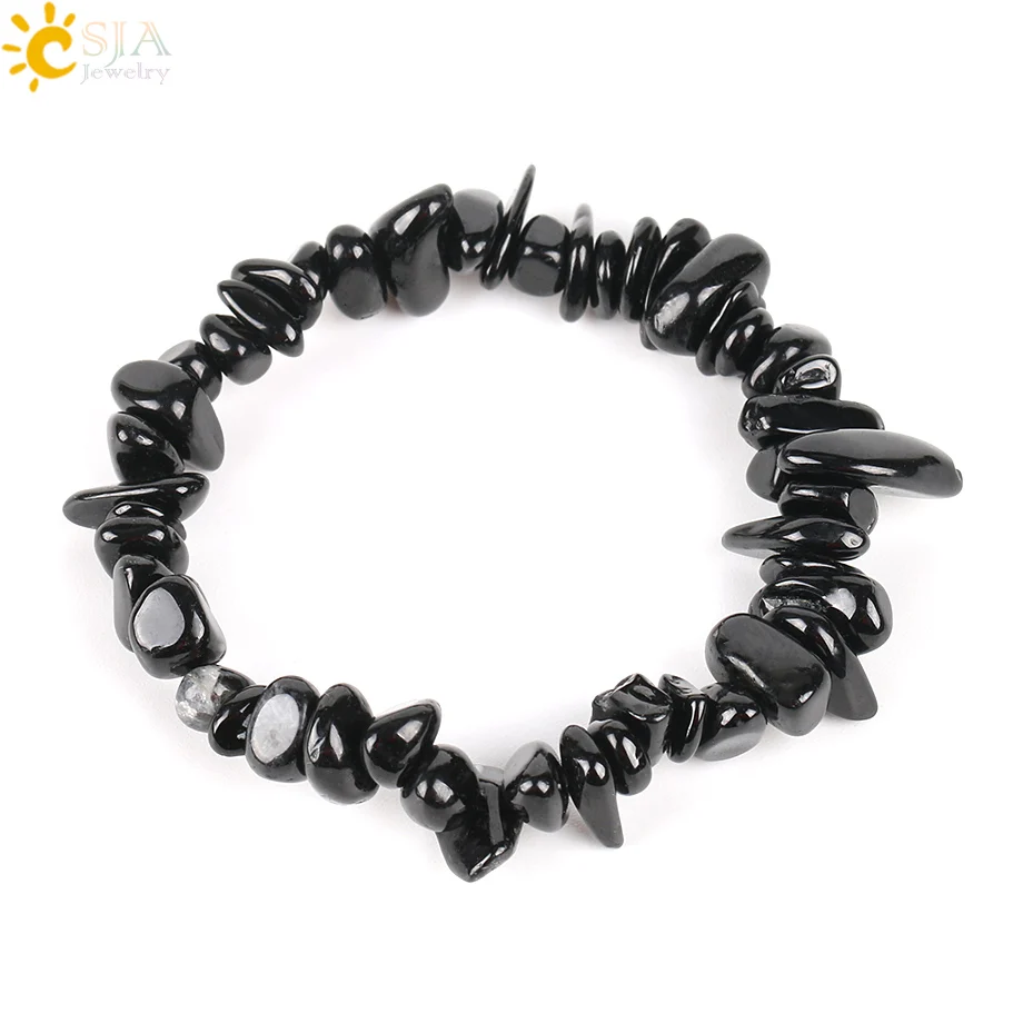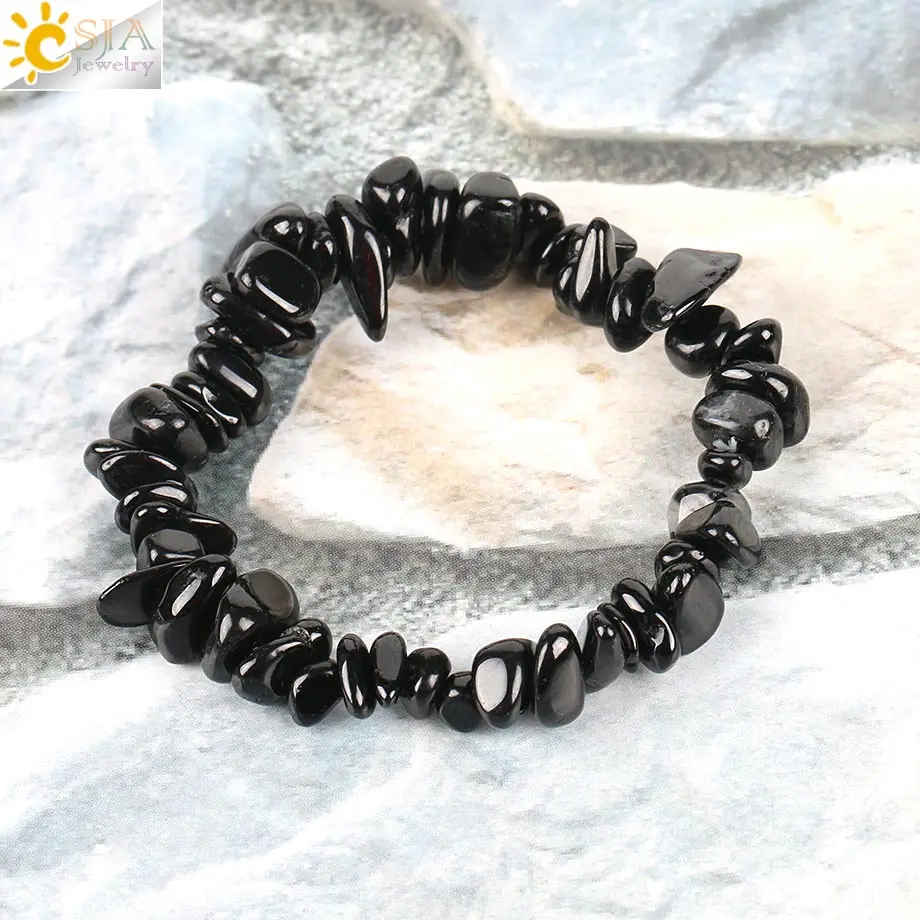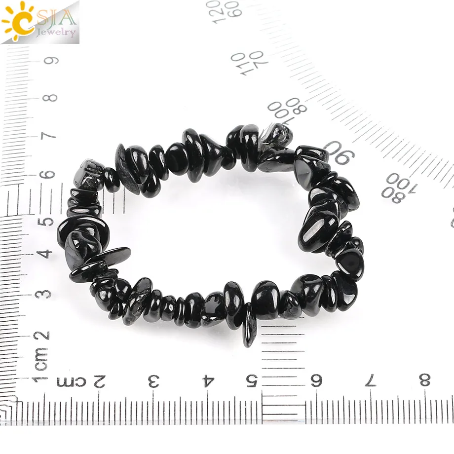 CSJA Black Tourmaline Bracelets for Women Crystal Bracelets Chip Beads Chakra Natural Gem Stone Reiki Healing Meditation E705