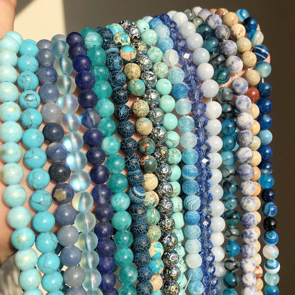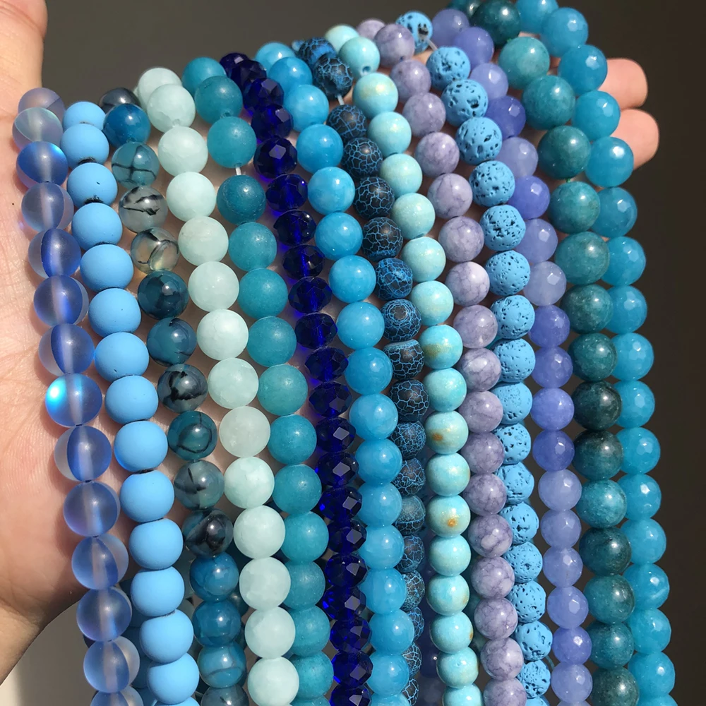 Blue Style Natural Stone Turquoises Agates Jades Lapis Lazuli Amazonite Round Beads For Jewelry Making DIY Bracelet 6-8mm