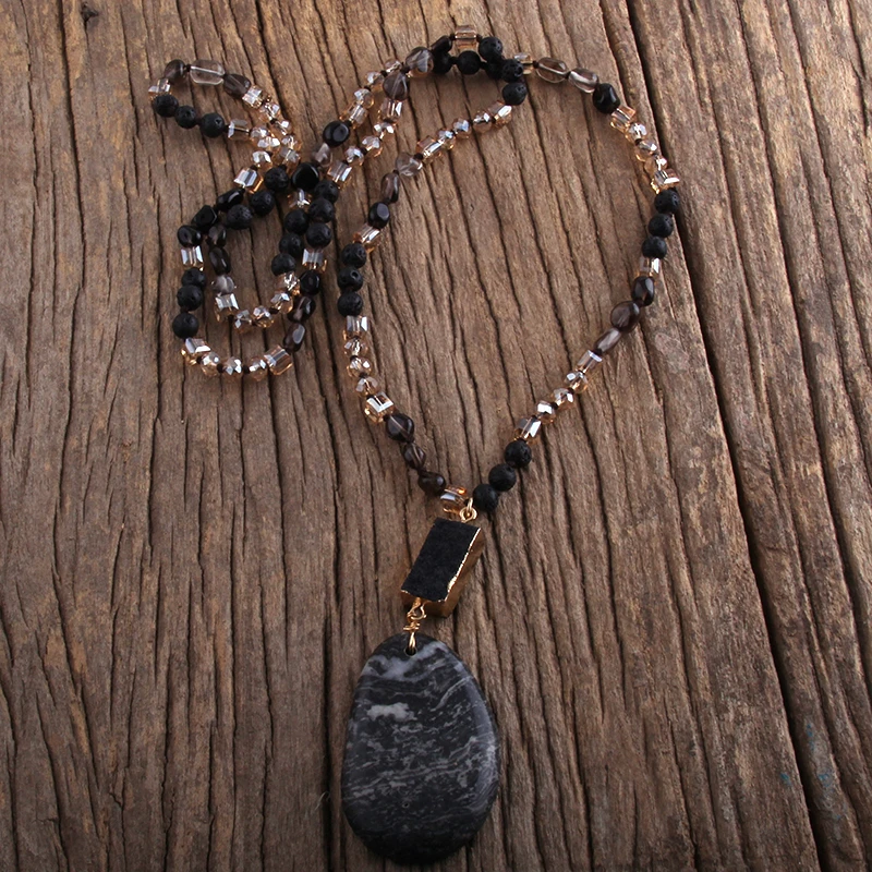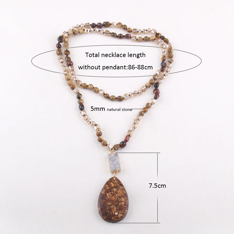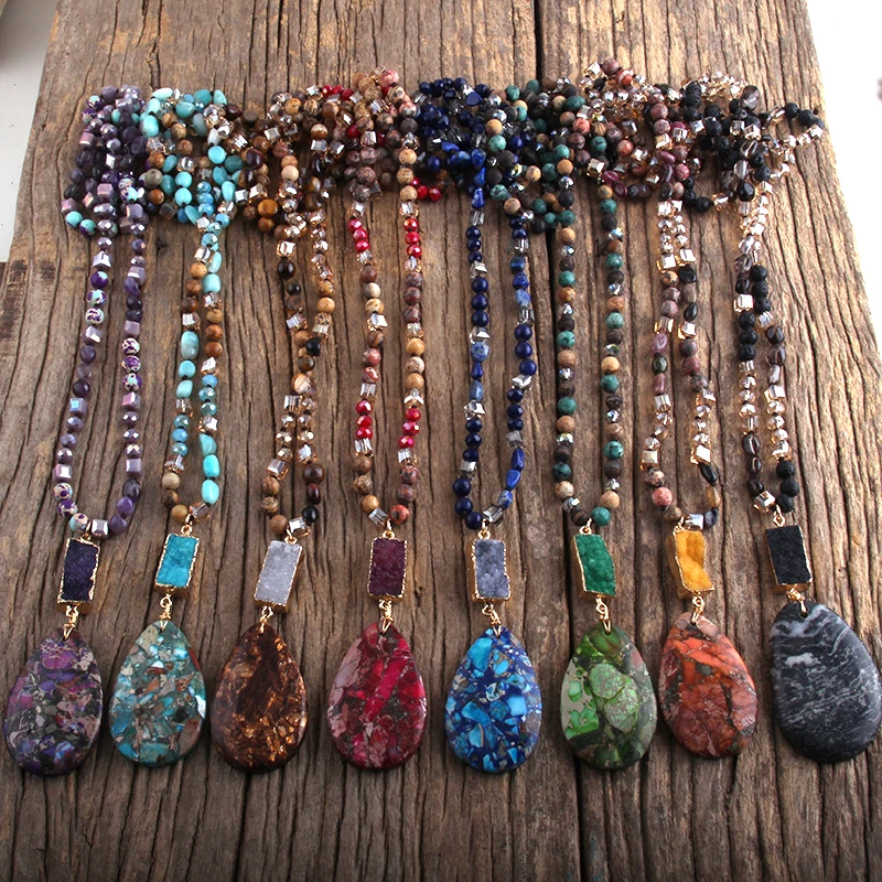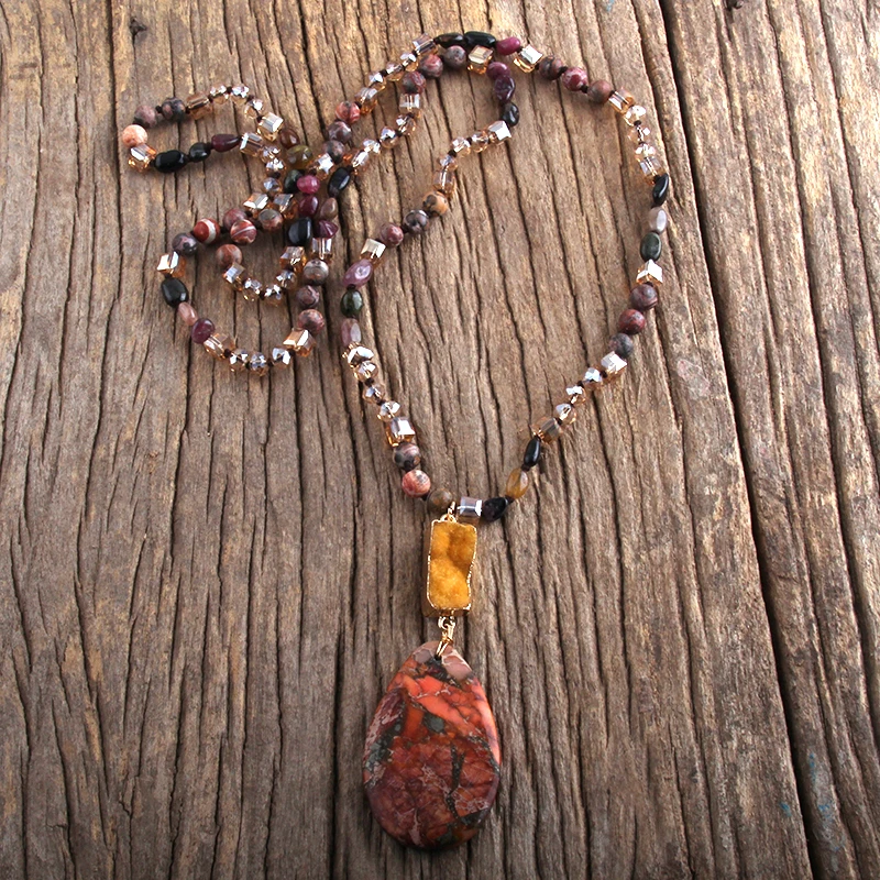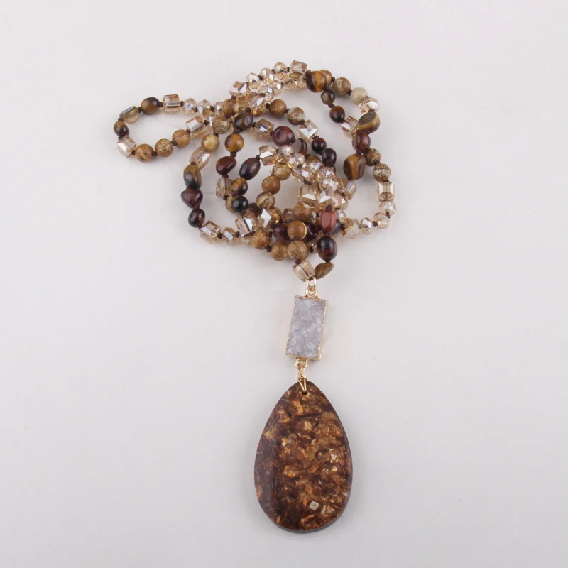 RH Fashion Bohemian Jewelry Natural Random Shape Stones With Druzy Links Semi Precious Pendant Necklaces For Women Boho Gift