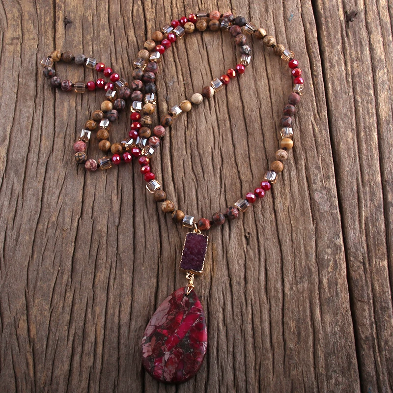 Make a statement with the RH Fashion Bohemian Jewelry Natural Random Shape Stones With Druzy Links Semi Precious Pendant Necklaces For Women. Whether you're treating yourself or surprising a loved one, this boho gift is sure to impress. Shop now and embrace your inner bohemian goddess with these stunning pendant necklaces.