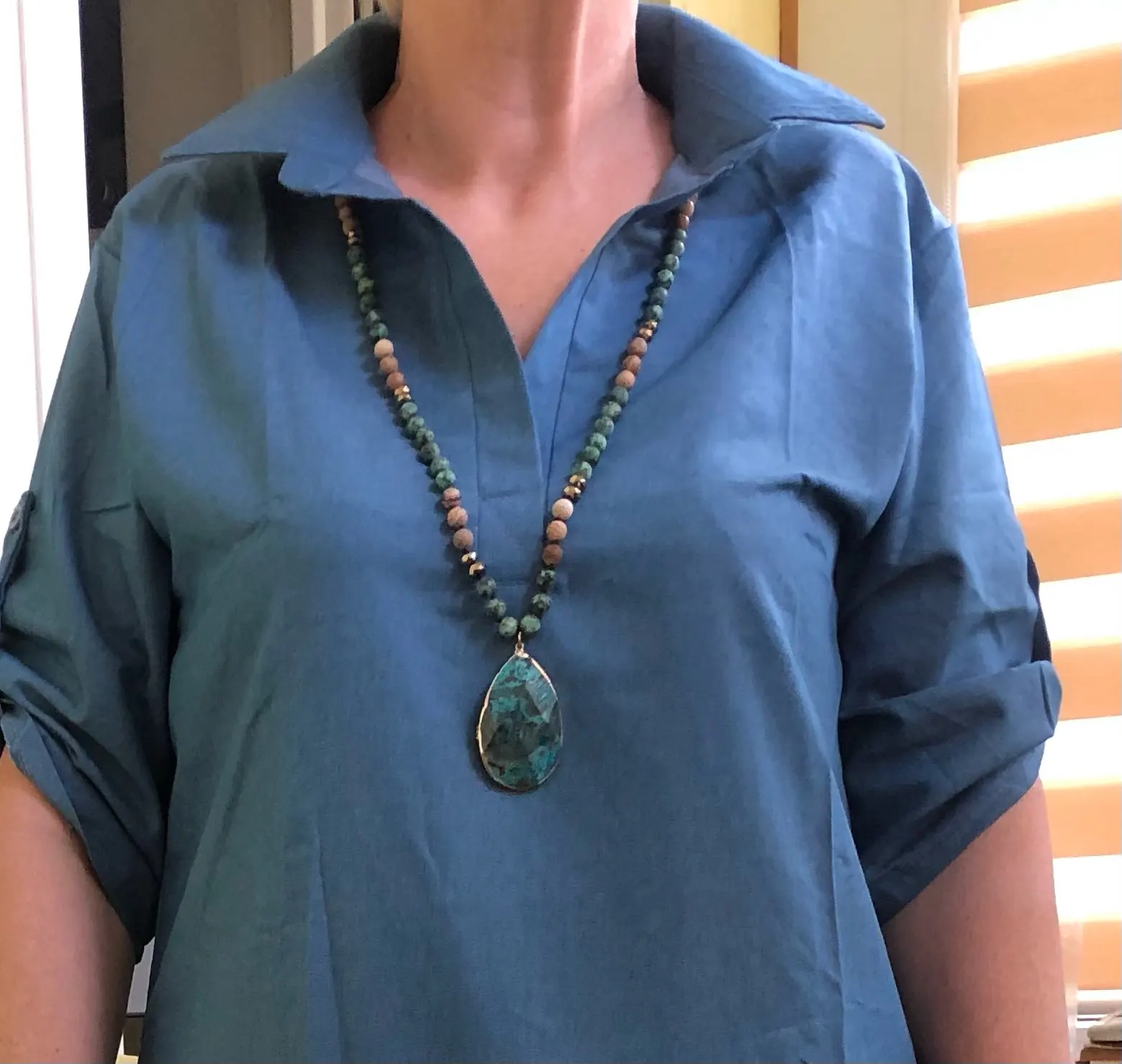 RH Fashion Boho Jewelry Natural Stones With Semi Precious Pendant Women Bohemia Necklace Gift
