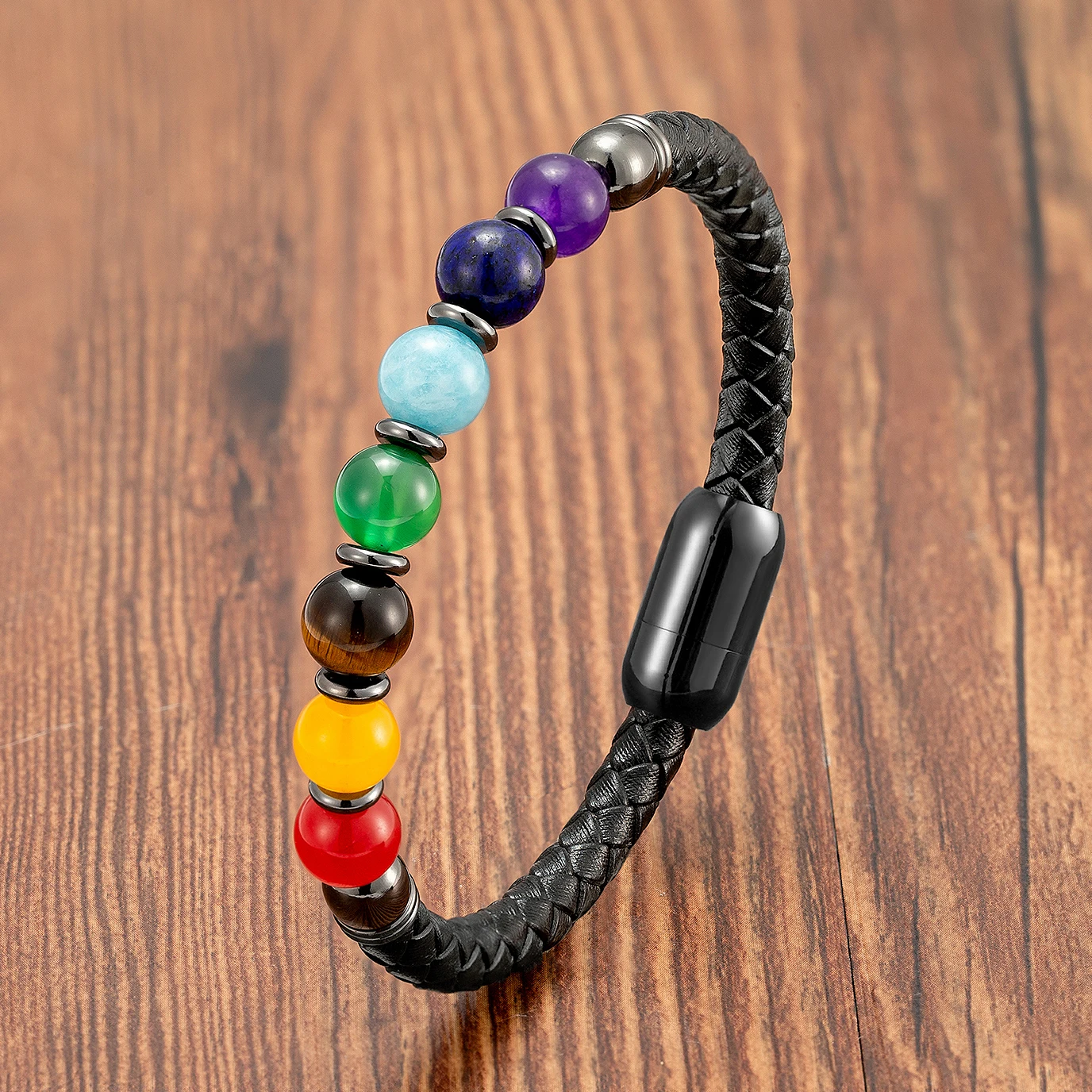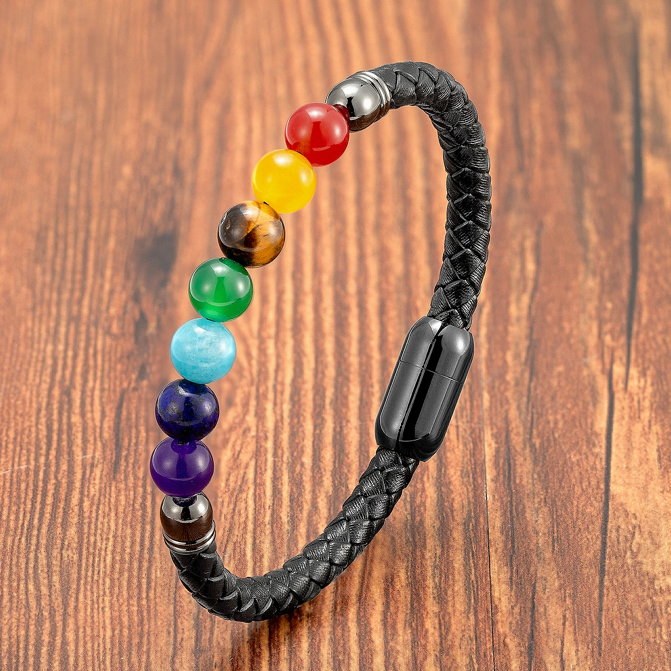 YISHUCHA,Chakra Bracelet For Women,Round,Natural Stone Bracelet,Black,Leather Rope Chain,Neutral,Couple Bracelet,Yoga Jewelry