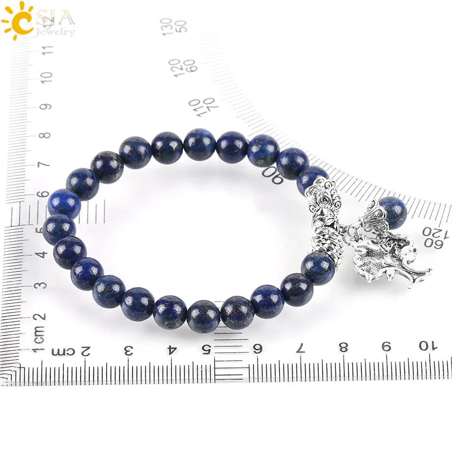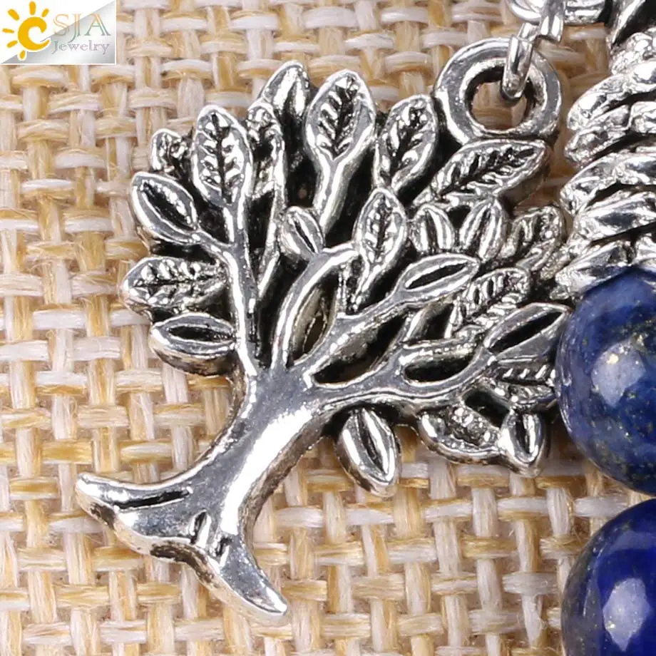 CSJA Chakra Natural Stone Lapis Lazuli Bracelets Tree of Life Bracelet Mala Beads Reiki Healing Meditation Energy Bangles E747