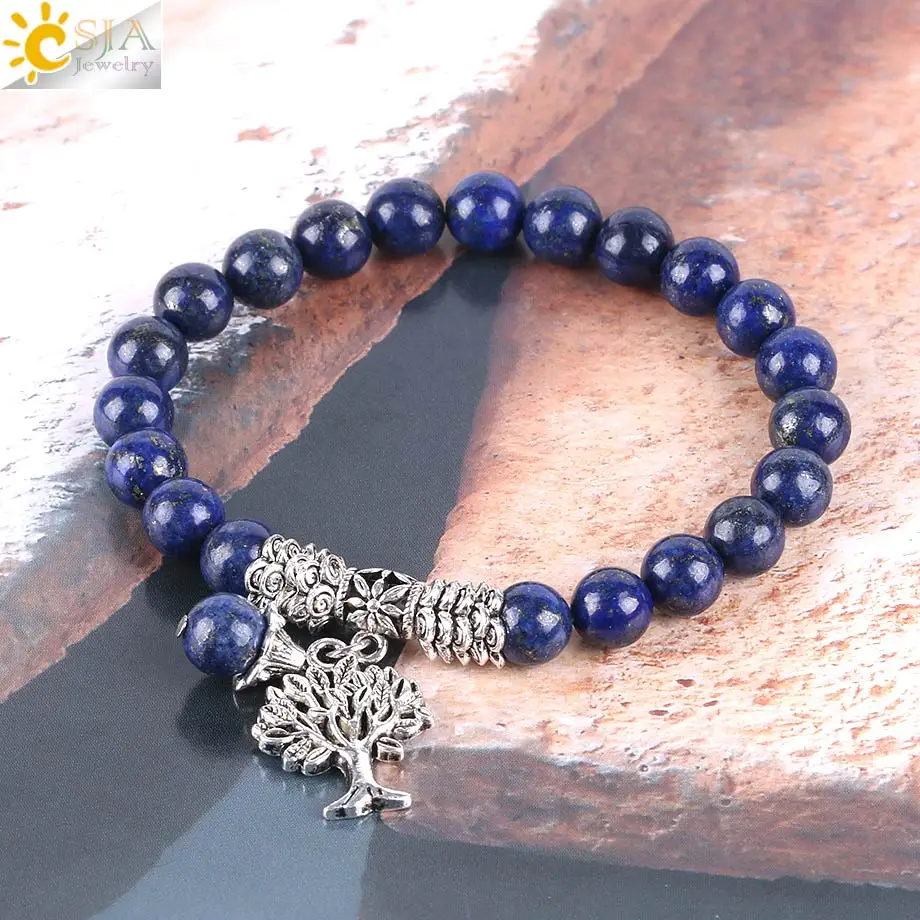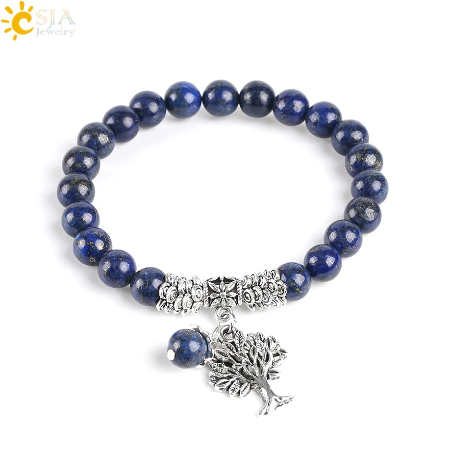 Shop the trendy CSJA Chakra Natural Stone Lapis Lazuli Bracelets Tree of Life Bracelet Mala Beads Reiki Healing Meditation Energy Bangles E747.