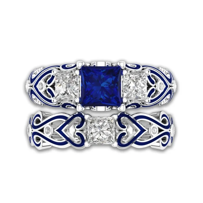 These trendy rings are designed with a heart-shaped pattern and adorned with sparkling Zircon side stones. The channel setting adds a touch of elegance to the overall design. Our rings come in Bridal Sets style, offering a complete and cohesive look.