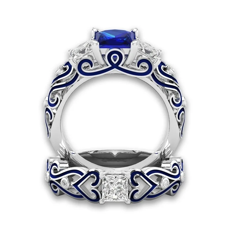 The model number of this specific ring is CT-NKR506. The silver metal used in crafting these rings is of superior quality, ensuring durability and long-lasting beauty. The main stone is a captivating Sapphire, known for its deep blue color and symbolism of wisdom and royalty.