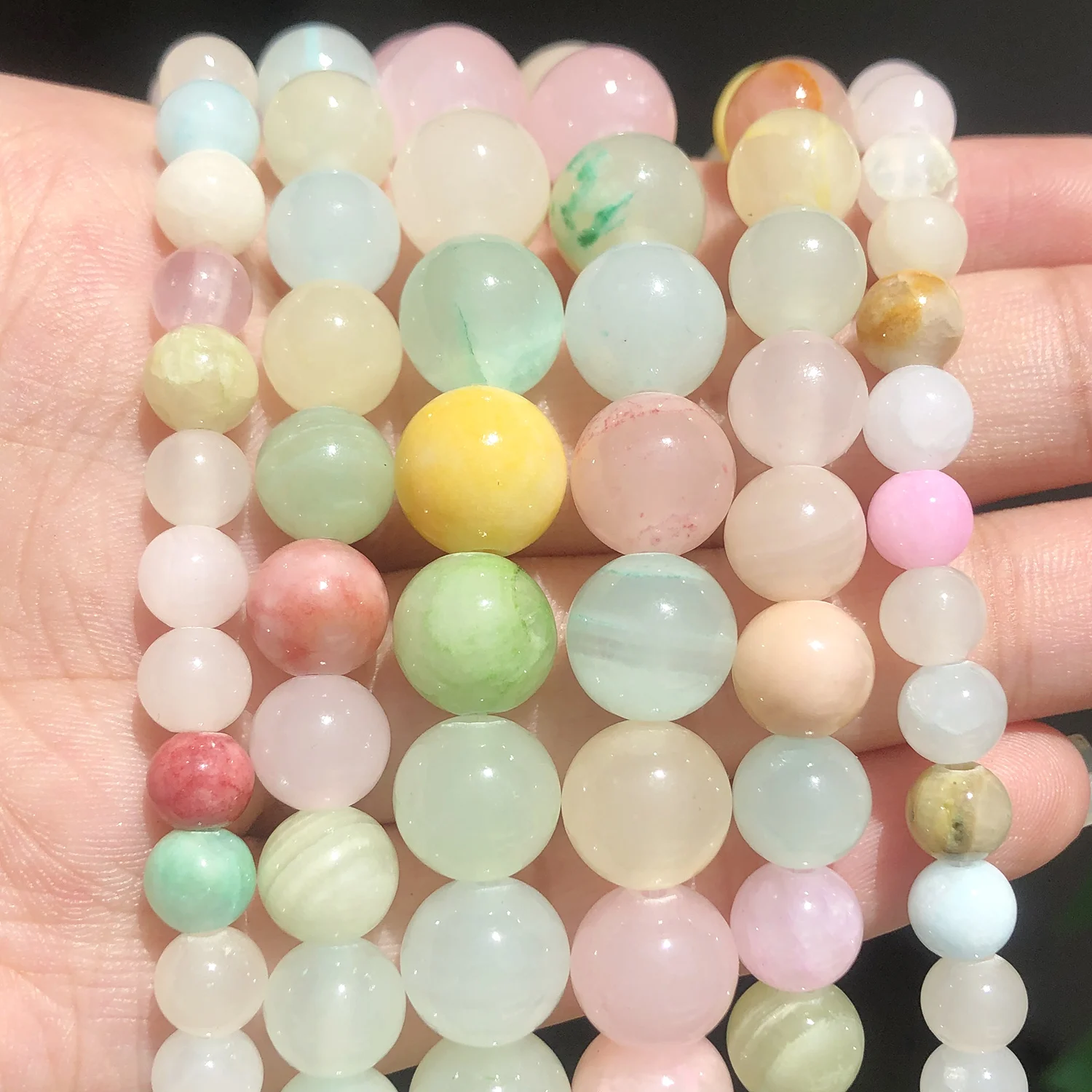 Corlorful Jade Chalcedony Beads Natural Stone Round Loose Spacer Beads for Jewelry Making Diy Bracelet Earrings 6 8 10mm 15inch