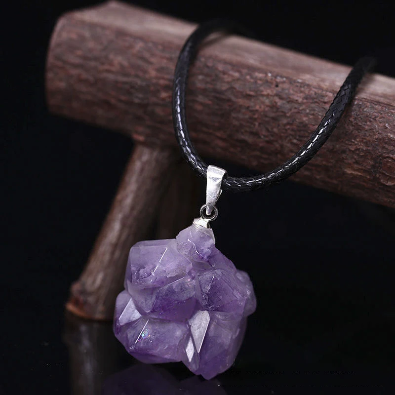 1PC Natural Crystal Uruguay Rough Stone Pendant Energy Healing Gemstone Amethyst Necklace Charms Chakra Halo Jewelry for Women