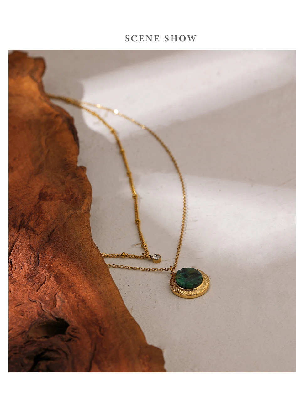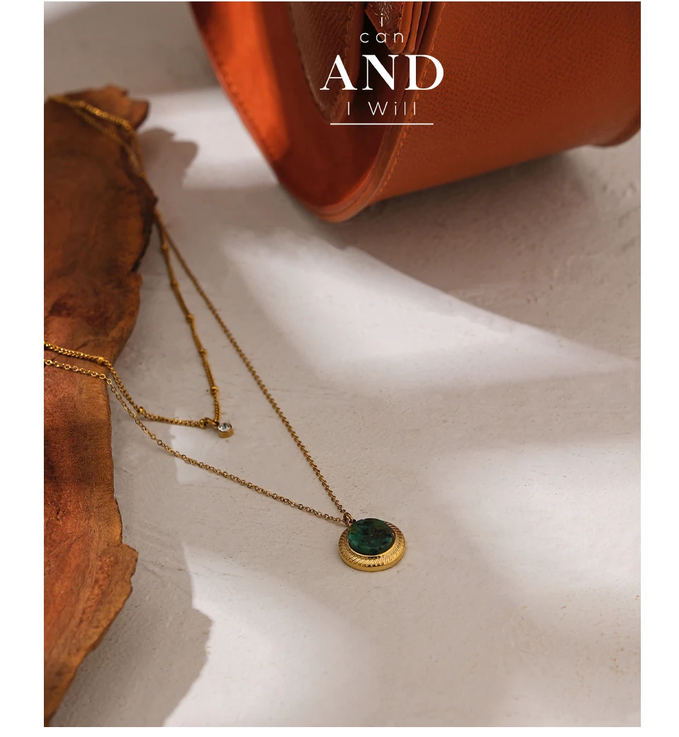 Elevate your style with the Yhpup Exquisite Round Natural Stone Layered Pendant Necklace. This high-quality stainless steel necklace is designed for the trendy woman who wants to make a statement at any party or special occasion.
