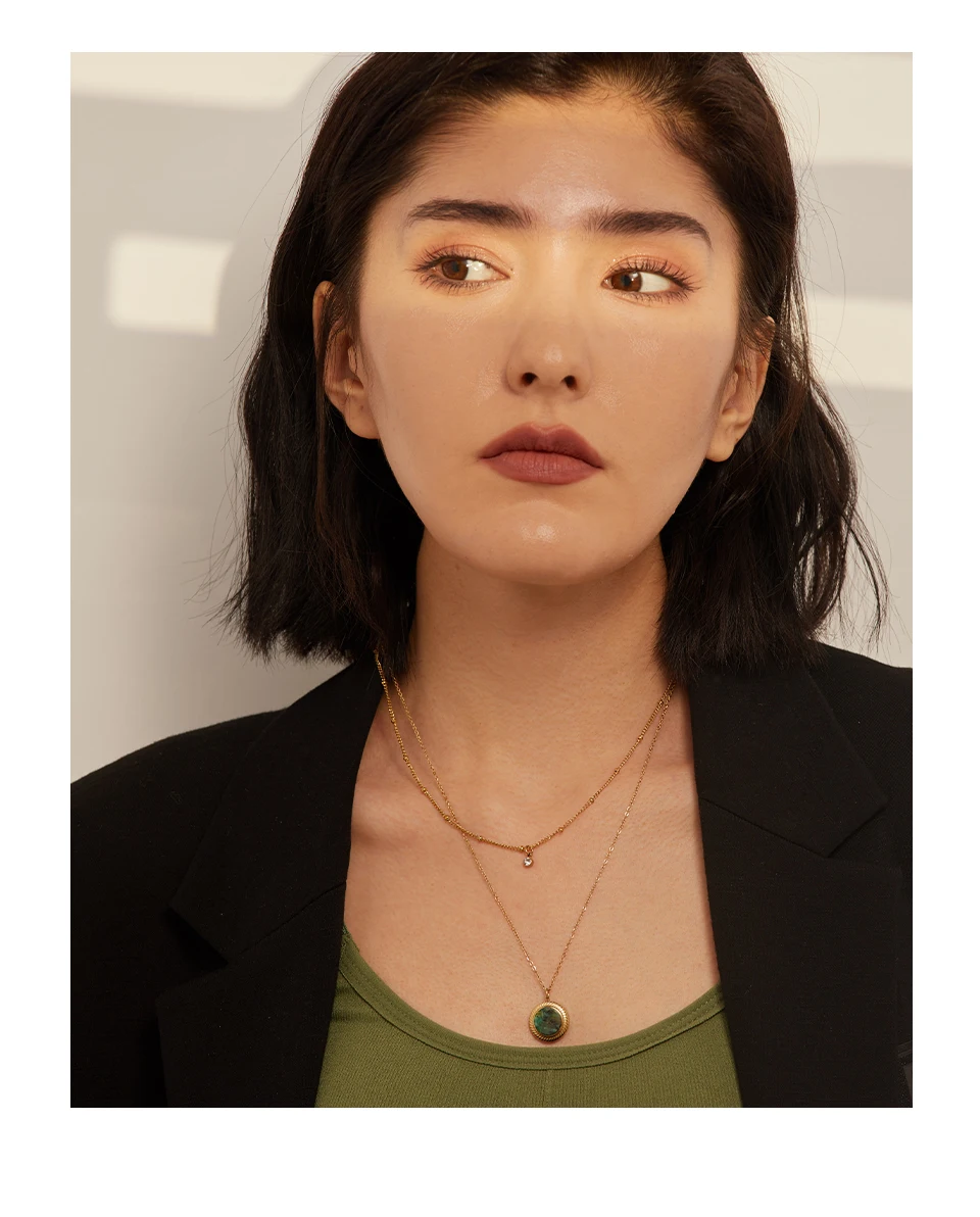 The Yhpup Exquisite Round Natural Stone Layered Pendant Necklace is not only stylish but also versatile. It is compatible with any outfit, making it the perfect accessory for any occasion. Whether you're dressing up for a night out or adding a touch of elegance to your everyday look, this necklace is sure to become a staple in your jewelry collection.