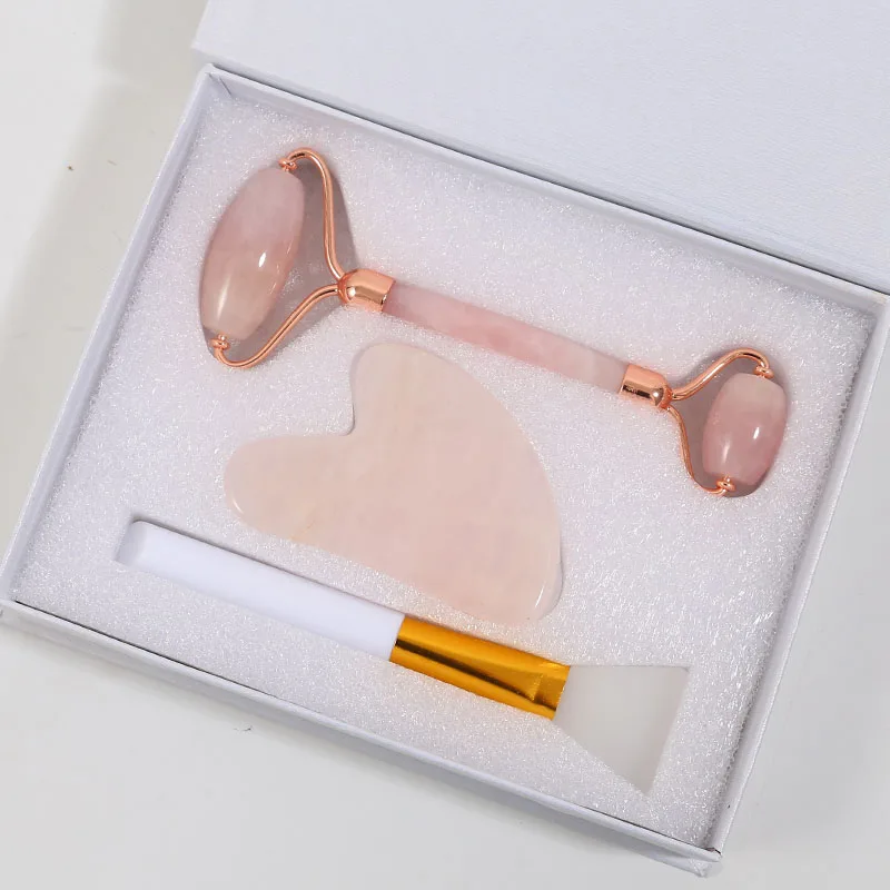 Facial Massager Natural Jade Roller Massage Rose Quartz Scraping Three-piece Facial Massage Neck Lift Firming Slimming Skin Care