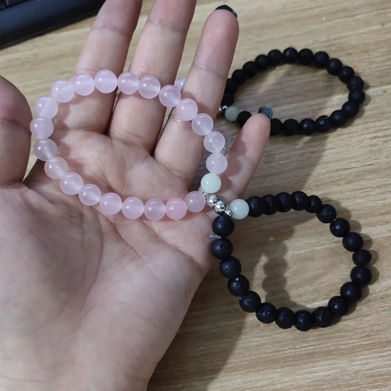 2pcs/Set Glowing Magnet Couple Bracelet Vintage Natural Stone Distance Paired Bracelet Lovers Jewelry Valentine's Day Gift