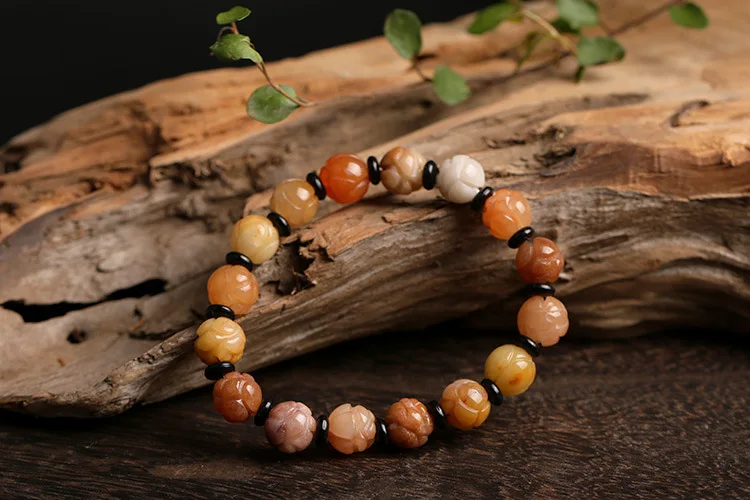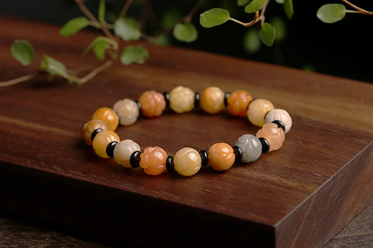 Introducing our stunning 10mm Natural Golden Silk Jade Lotus Beads Strand Bracelets, the must-have accessory for women in 2021. Handmade with the finest quality natural jade, these trendy beaded bracelets are the perfect addition to any jewelry collection.