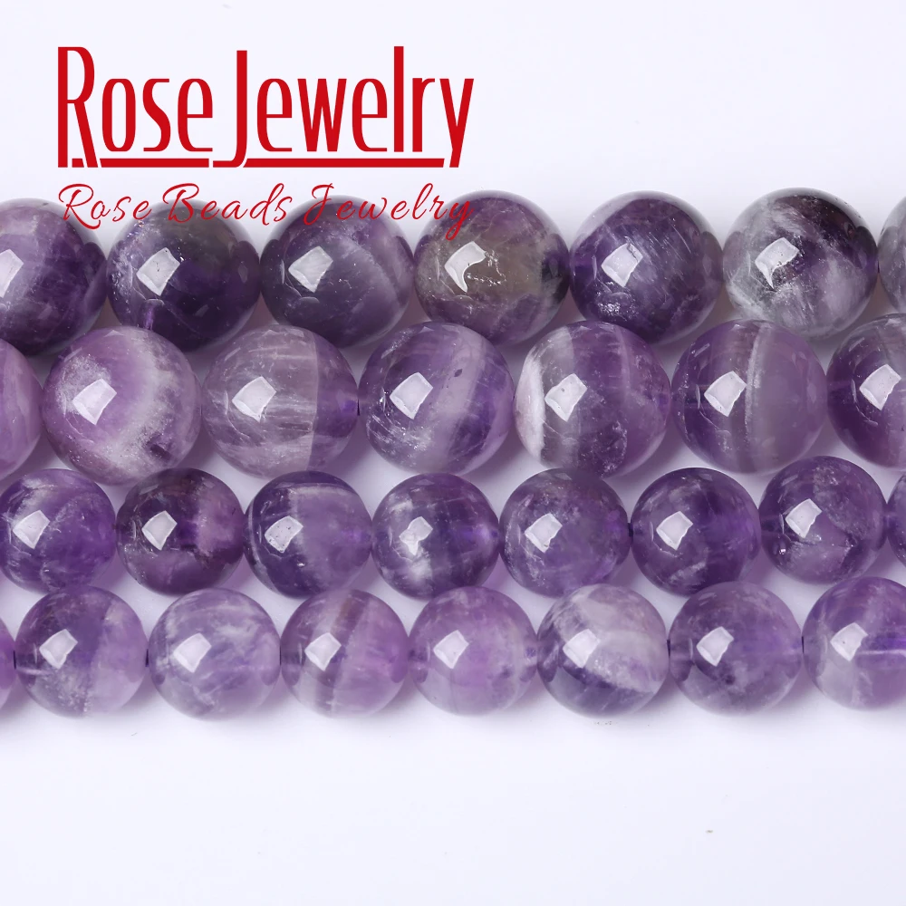 Wholesale Natural Stone Dream Lace Color Purple Amethysts Crystals Round Loose Beads 15" Strand 4 6 8 10 12MM For Jewelry Making