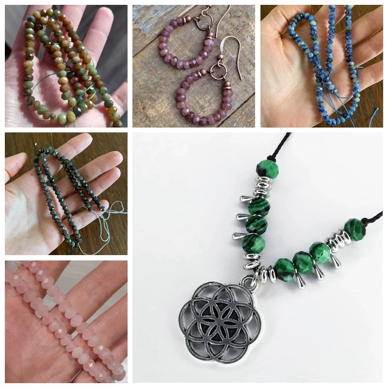 4x6mm Natural Faceted Green Jades Stone Beads Rondelle Flat Loose Bead Charm For Jewelry Making Accessory Handmade 40/80pcs