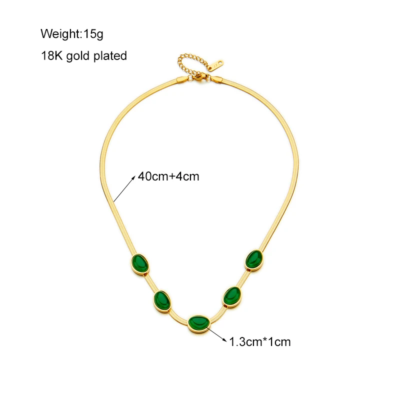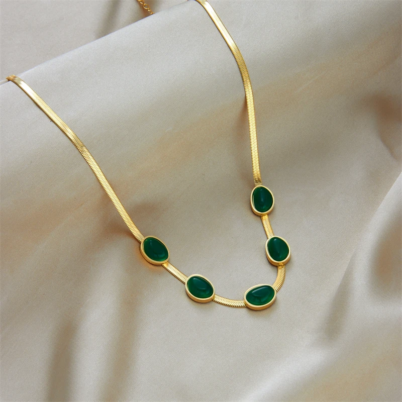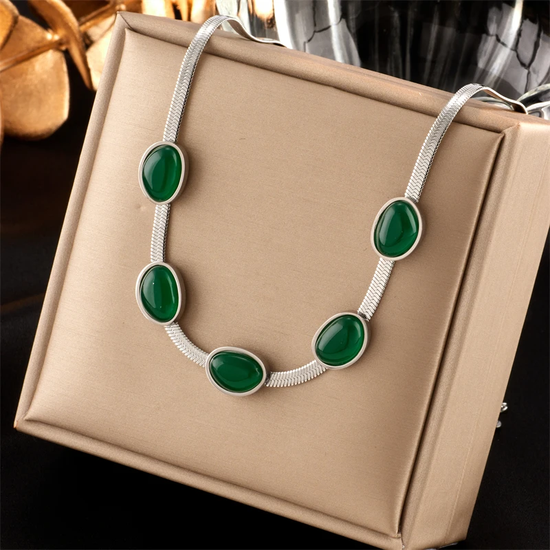 MEYRROYU 316L Stainless Steel Green Stone Jade Snake Chain Collar Necklaces For Women Party Gift New бижутерия для женщин Bijoux