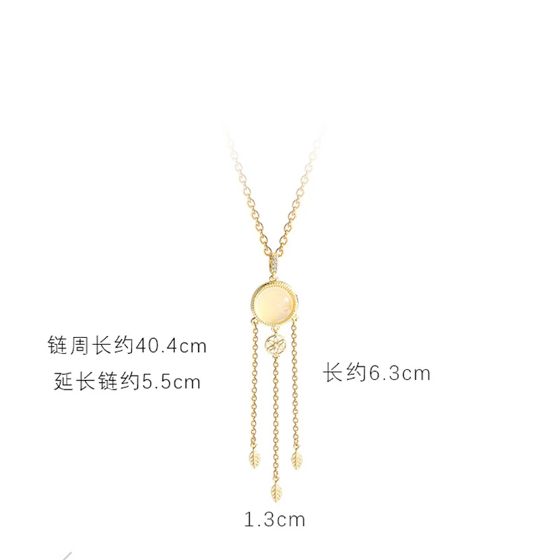 DIEYURO 316L Stainless Steel High-class Vintage Jade Leaf Tassel Pendant Necklace Female Temperament Long Jewelry Exquisite Gift