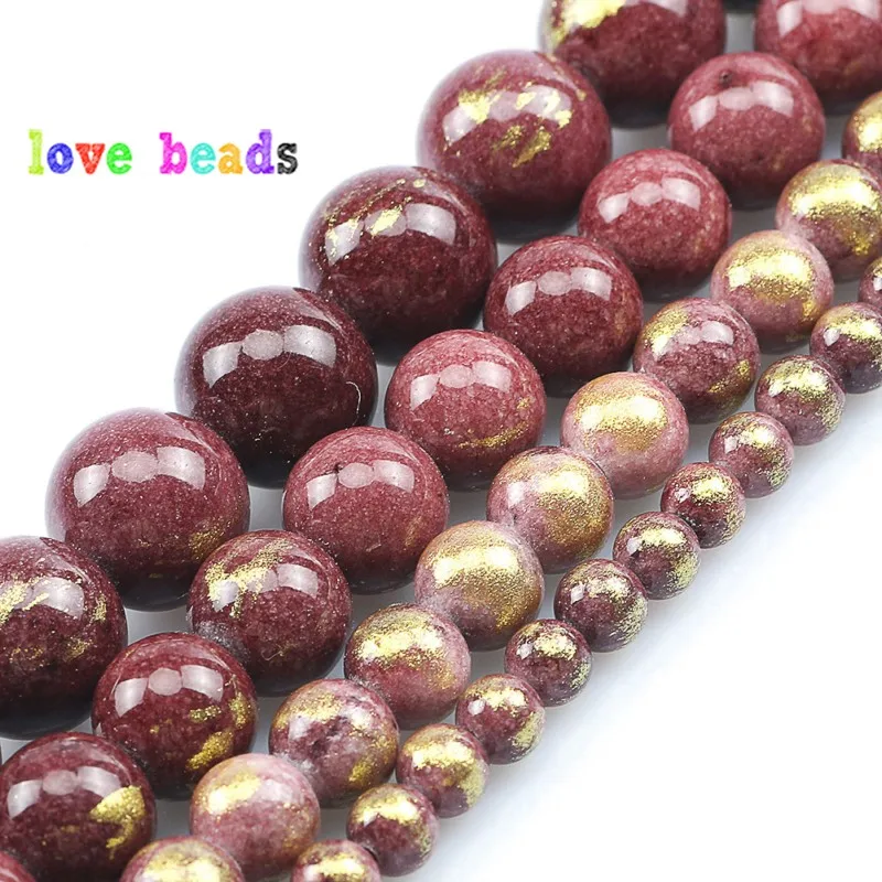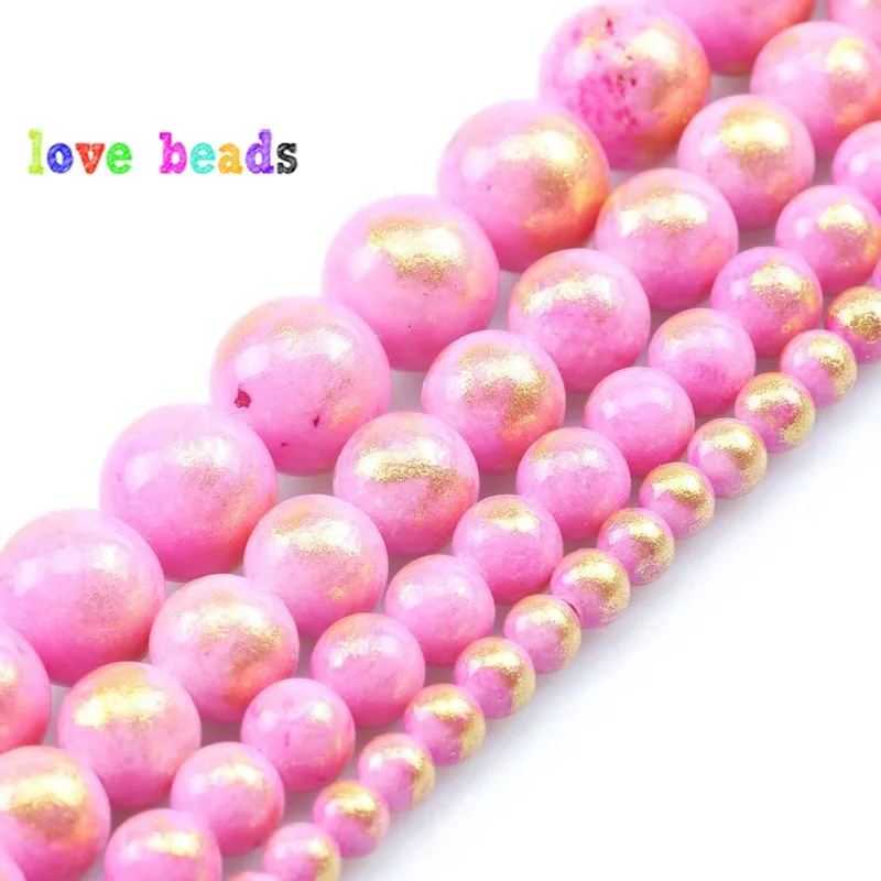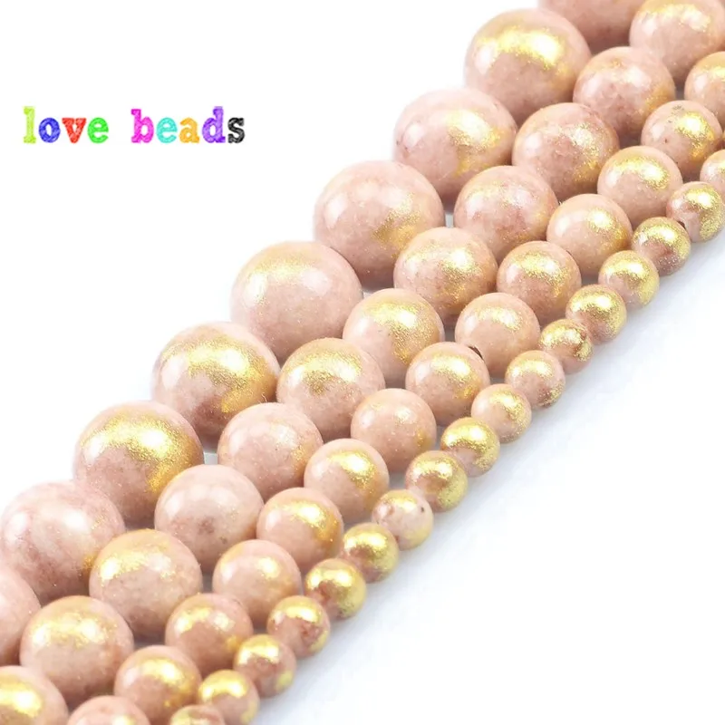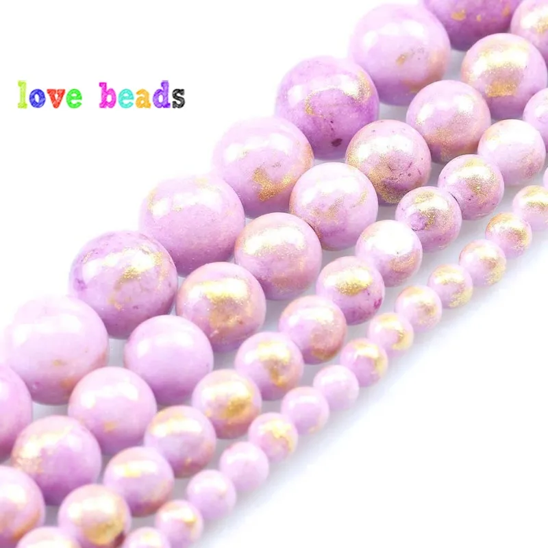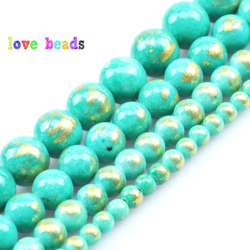 Natural Jades with Gold Lapis Lazuli Round Loose Stone Beads for Jewelry Making DIY Bracelets Accessories 15inch 4/6/8/10mm