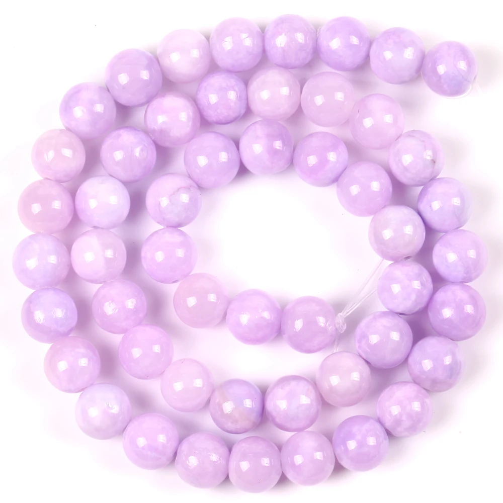 Natural Stone Beads 6/8/10/12mm Light Purple Jades Round Spacer Beads for Jewelry Making diy Bracelets Necklace 15"