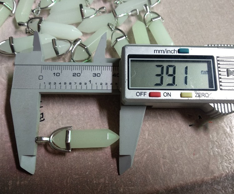Crafted in a sleek geometric shape, our pendant measures 39 * 10mm and is made from high-quality luminous stone with an alloy buckle for added durability. The luminous stone glows in the dark, creating a mesmerizing effect that is both stylish and attention-grabbing.