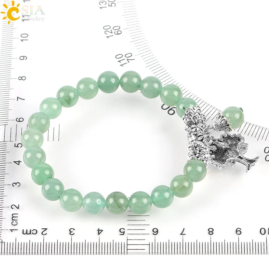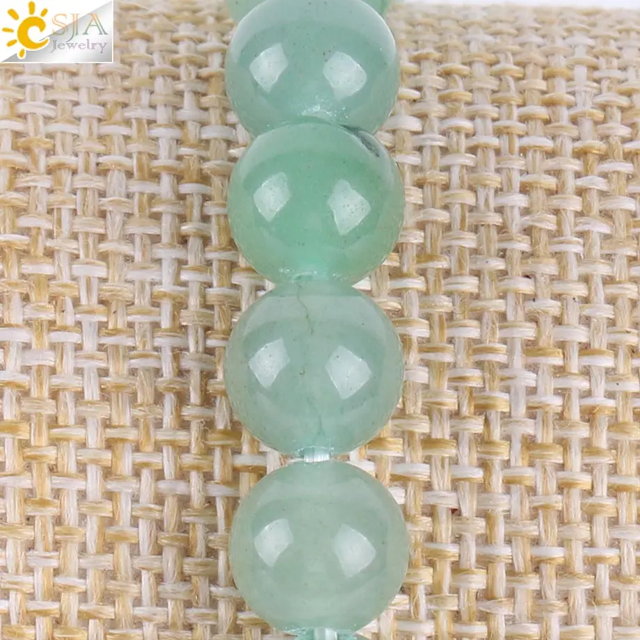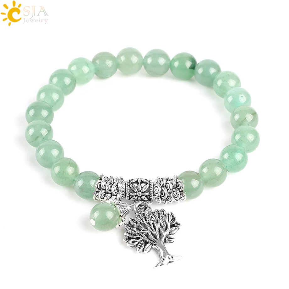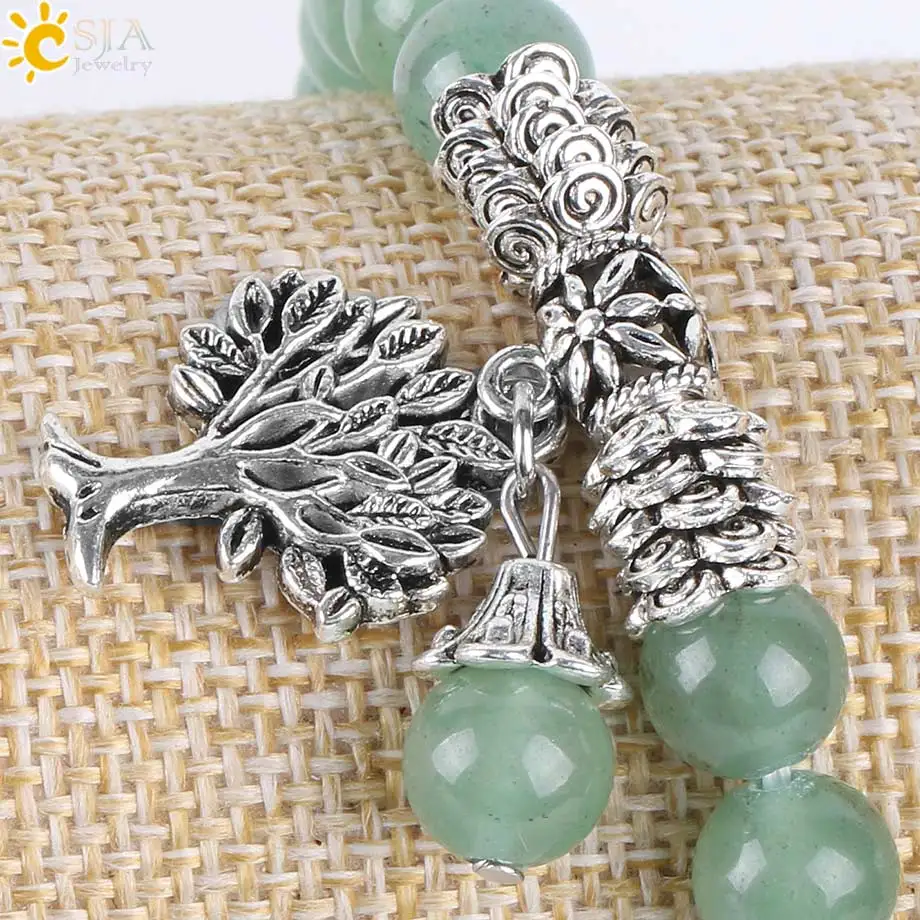 CSJA New Meditation Green Aventurine Women Bracelets Natural Stone Yoga Mala Prayer Rosary Beads Healing Reiki Tree of Life E748