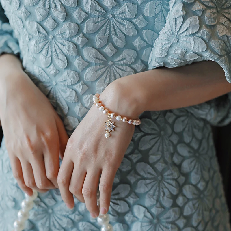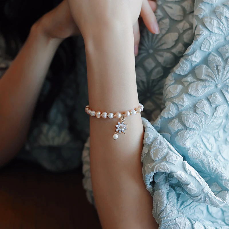 Natural Baroque Pearl Zircon Flower Color Matching Bracelets Elegant Accessories For Woman Korean Fashion Jewelry Wedding girls