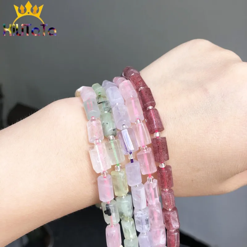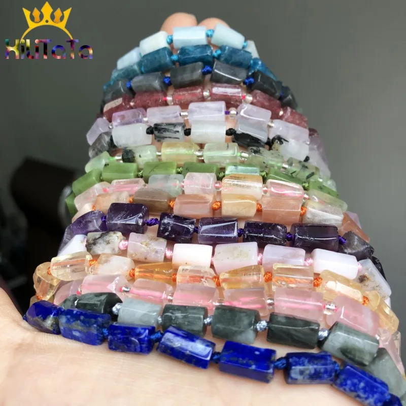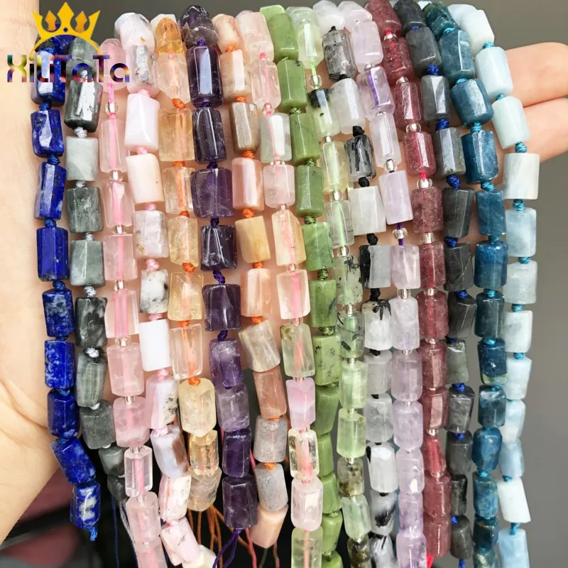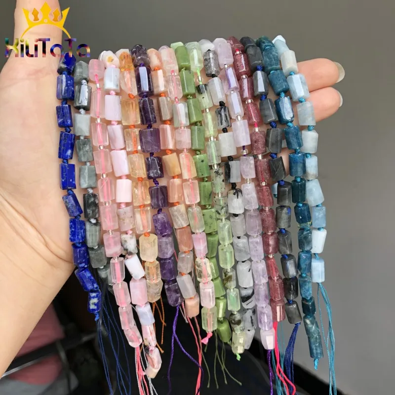 6x10mm Natural Faceted Gem Apatite Quartz Citrines Aquamarina Jades Stone Cylinder Loose Beads For Jewelry Making DIY Bracelets