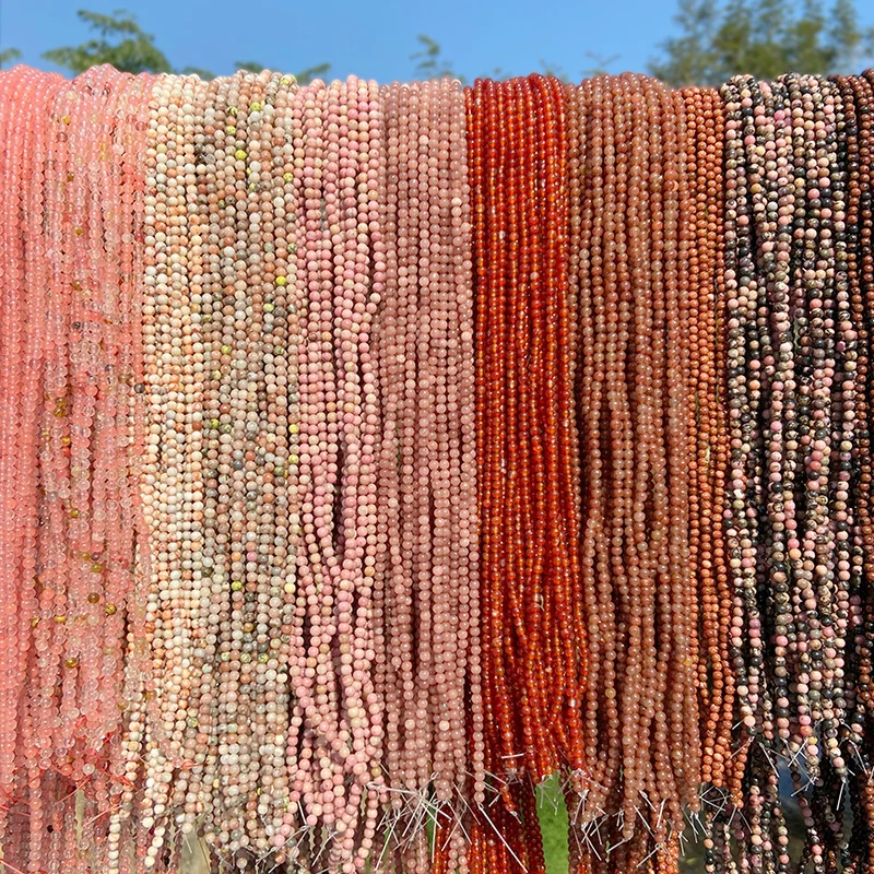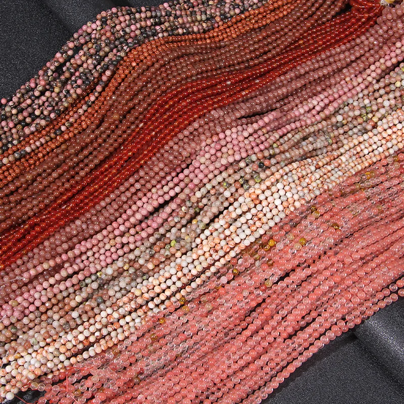 4mm Natural Pink Rhdonite Agat Jaspers Stone Beads Round Jades Loose Spacer Bead For Jewelry Making DIY Bracelet Accessori 15''