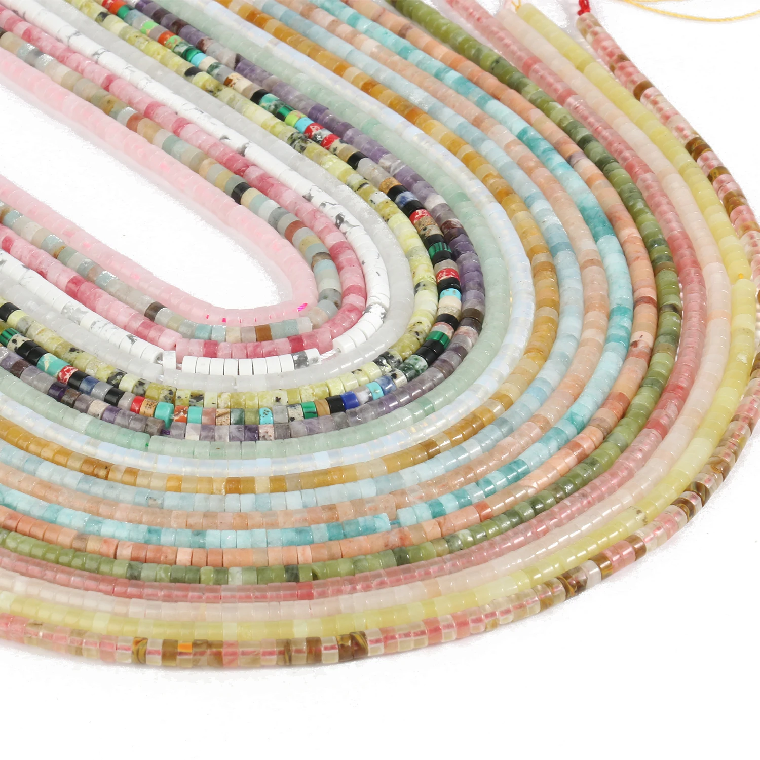 Don't miss out on these versatile and stylish beads. Start creating your own unique jewelry pieces today with our 4x2mm Natural Stone Flat Round Agates Turquoises Jades Quartz Crystal Loose Spacer Beads!