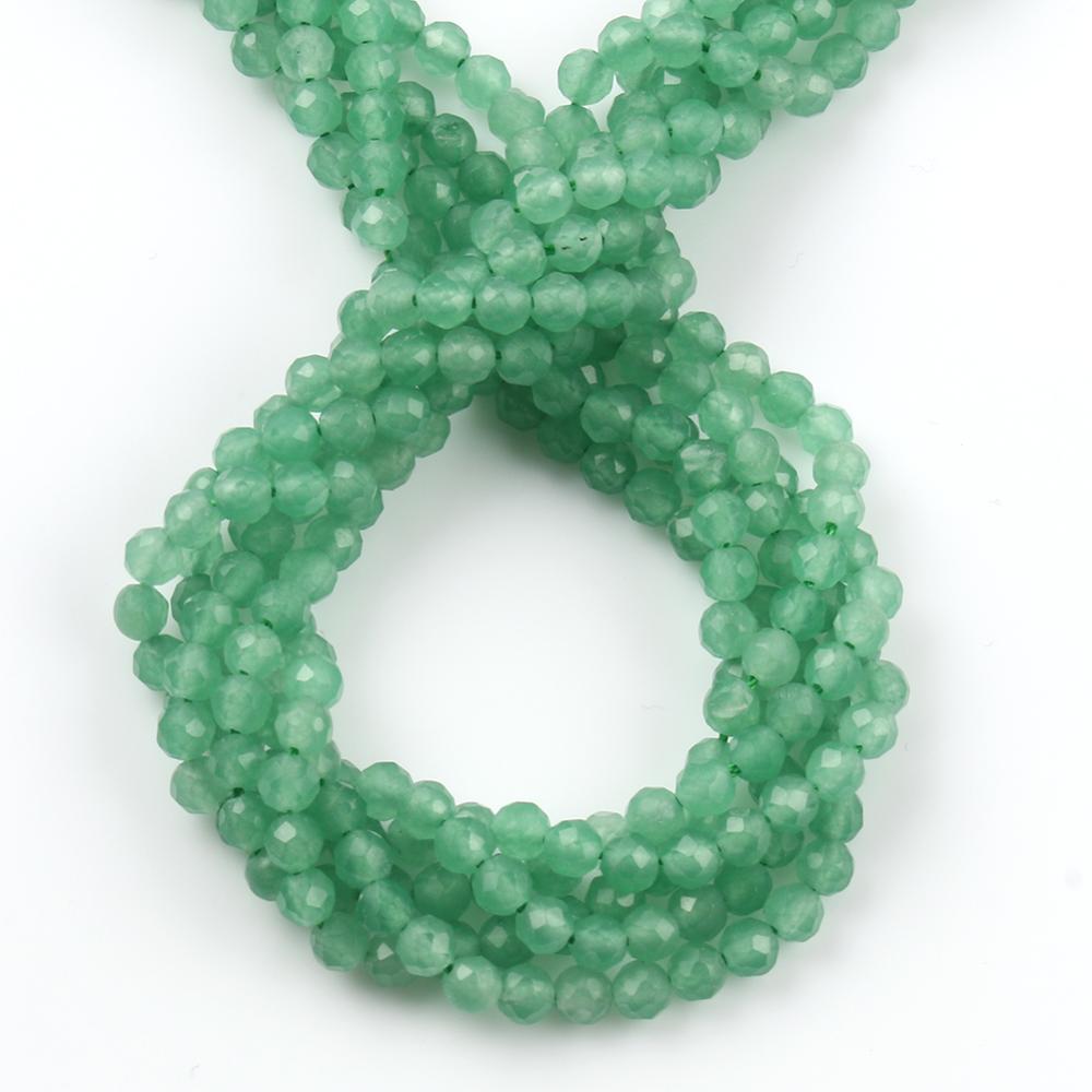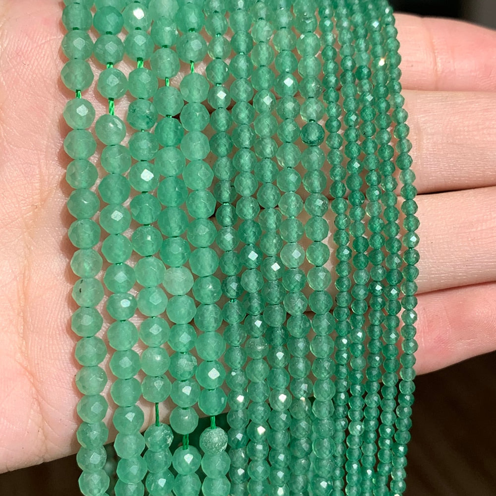 Natural Stone 2/3/4mm Green Aventurine Jades Faceted Mineral Loose Beads for Jewelry Making DIY Christmas Gift Bracelets 15''