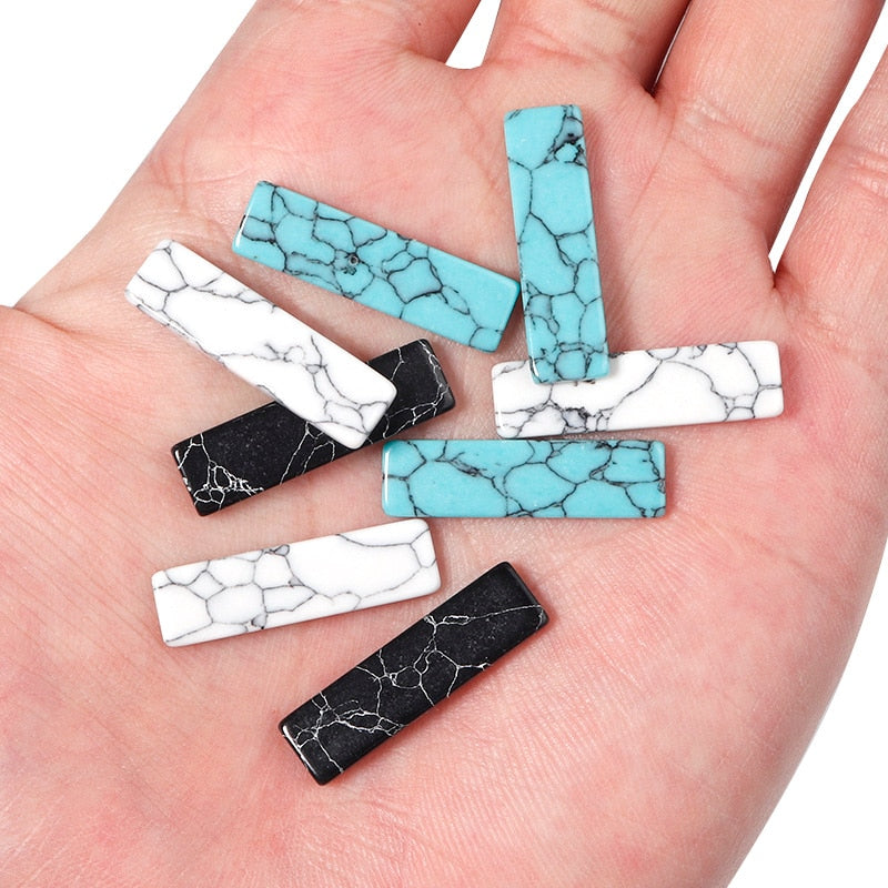 So why wait? Get your hands on these 10pcs Natural Stone Long Strip Shape Black/Green/White 7x25mm Turquoise Cabochon Spacers and start creating stunning and unique jewelry pieces today. Elevate your DIY jewelry making projects with these beautiful and versatile spacers.