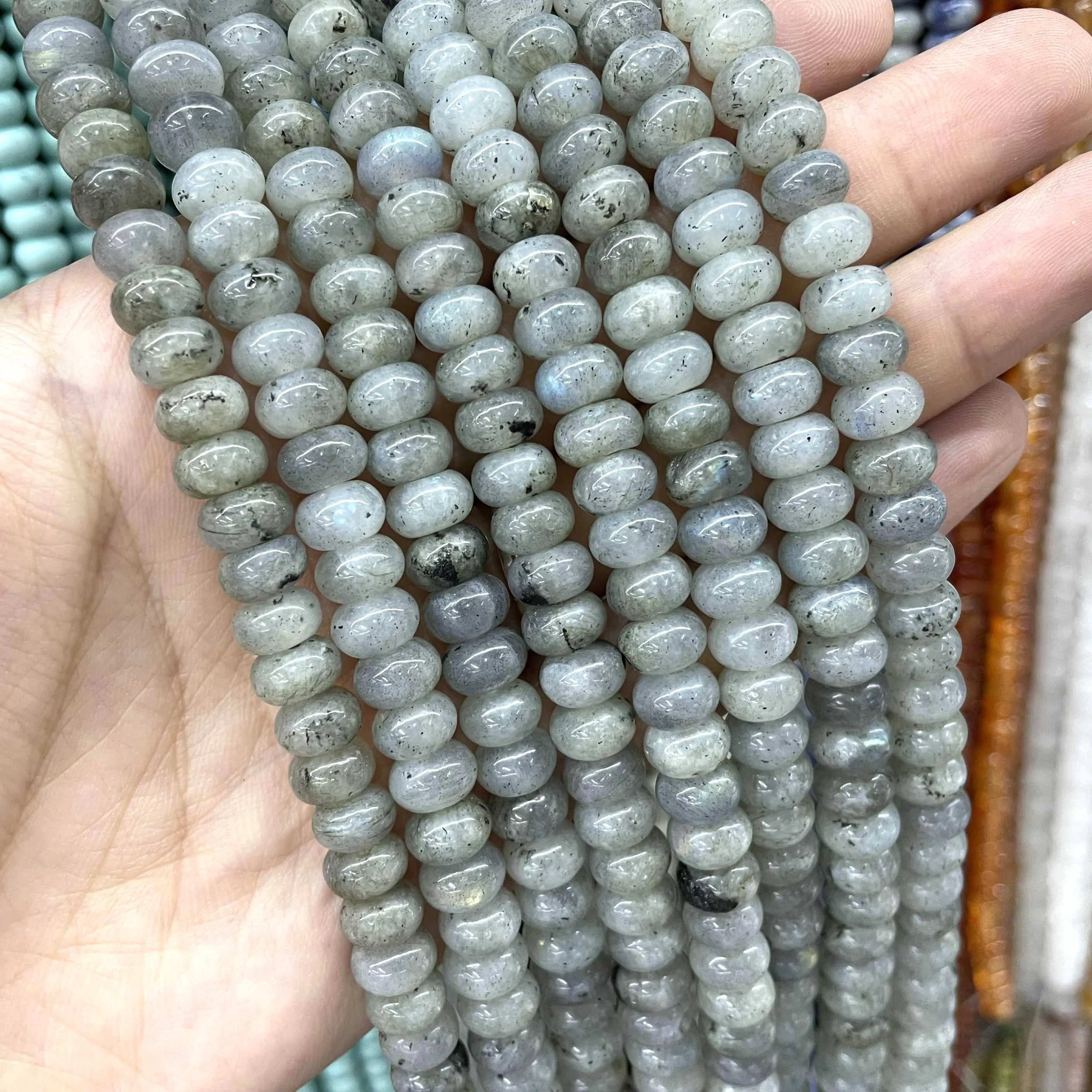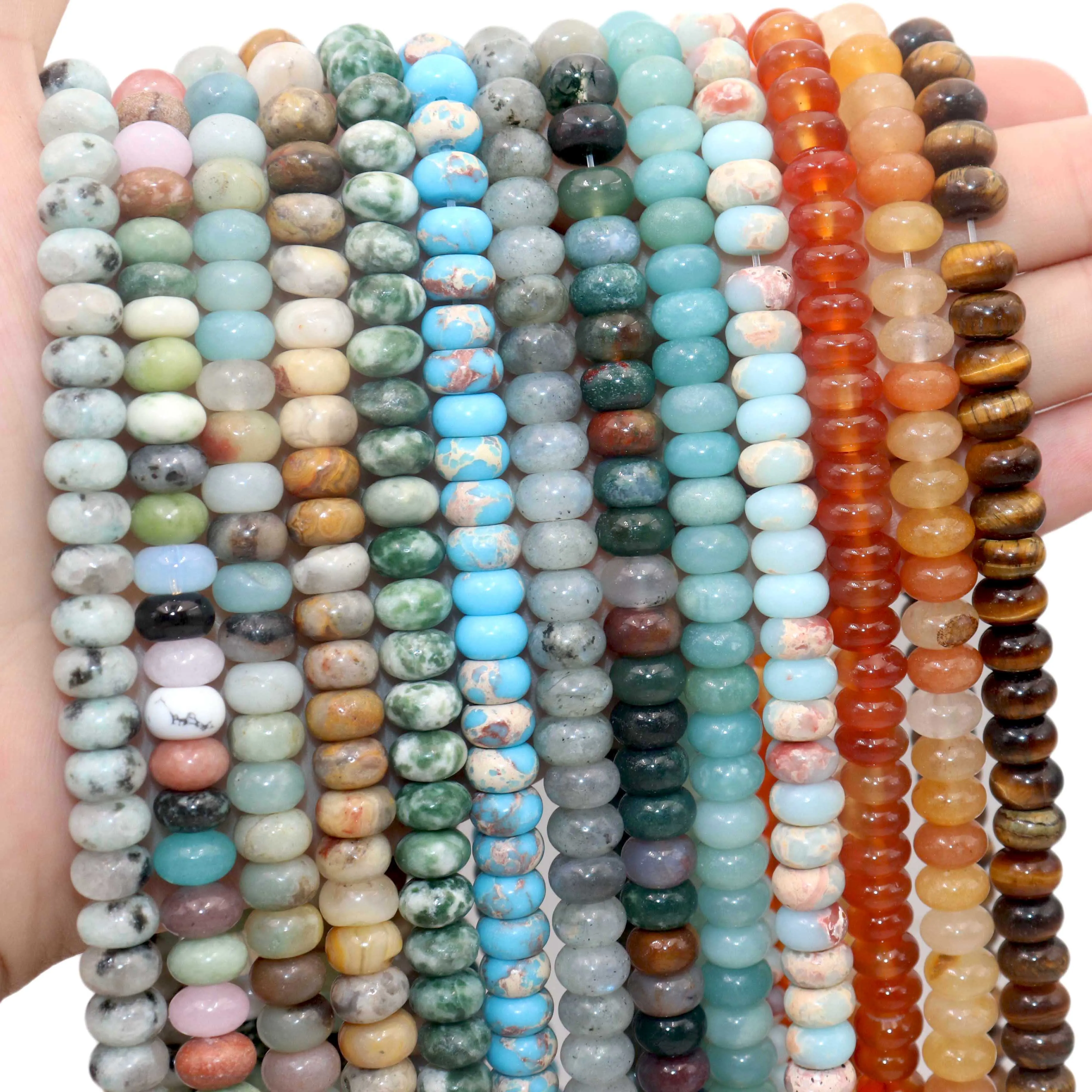 6 8mm Natural Stone Spacers Round Turquoises Agates Jades Amazonite Flat Beads For Jewelry Making DIY Bracelet Accessories