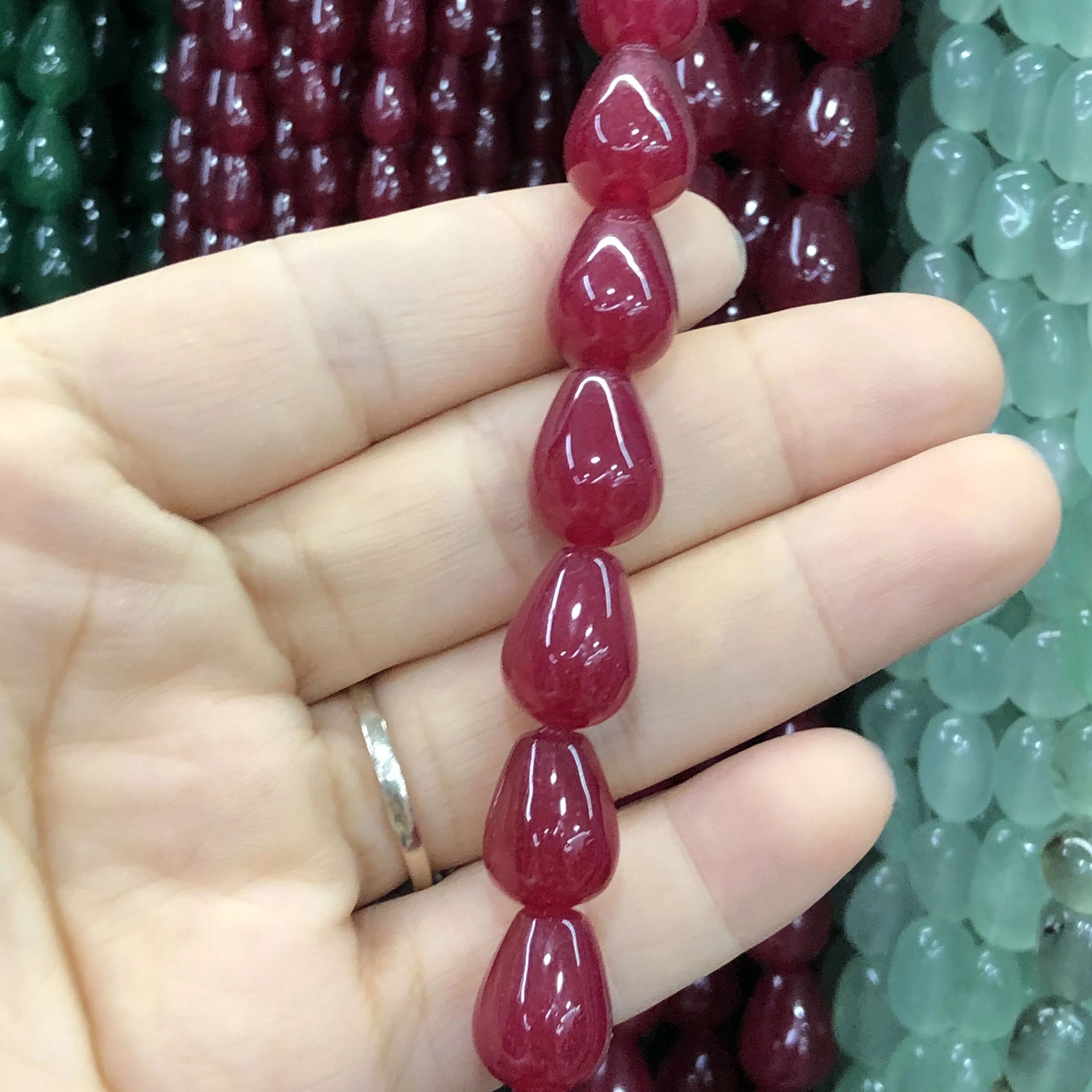 Our Water Drop Red Chalcedony Jade beads come in two sizes: 8X12mm and 10x14mm. Each pack contains approximately 28-30pcs or 26-28pcs, depending on the size. The outer diameter of these beads is 10mm.