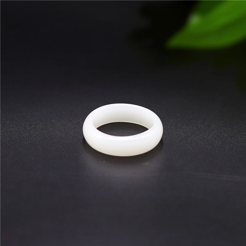 Natural White Hetian Jade Ring Chinese Jadeite Amulet Fashion Charm Jewelry Hand Carved Crafts Gifts for Women Men