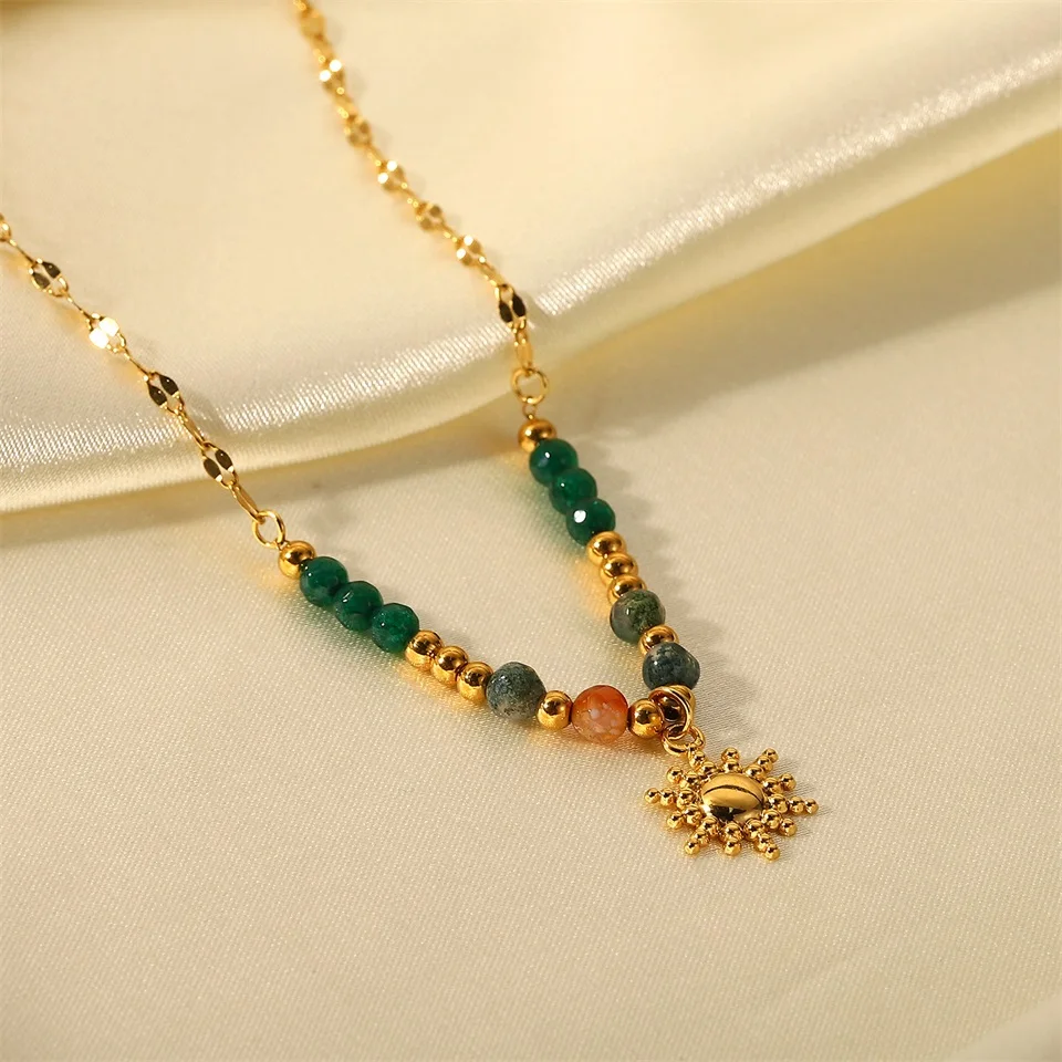 New trend natural stone Necklace Fashion Gold Color Stainless steel ball pendant Necklace party anniversary Jewelry gift