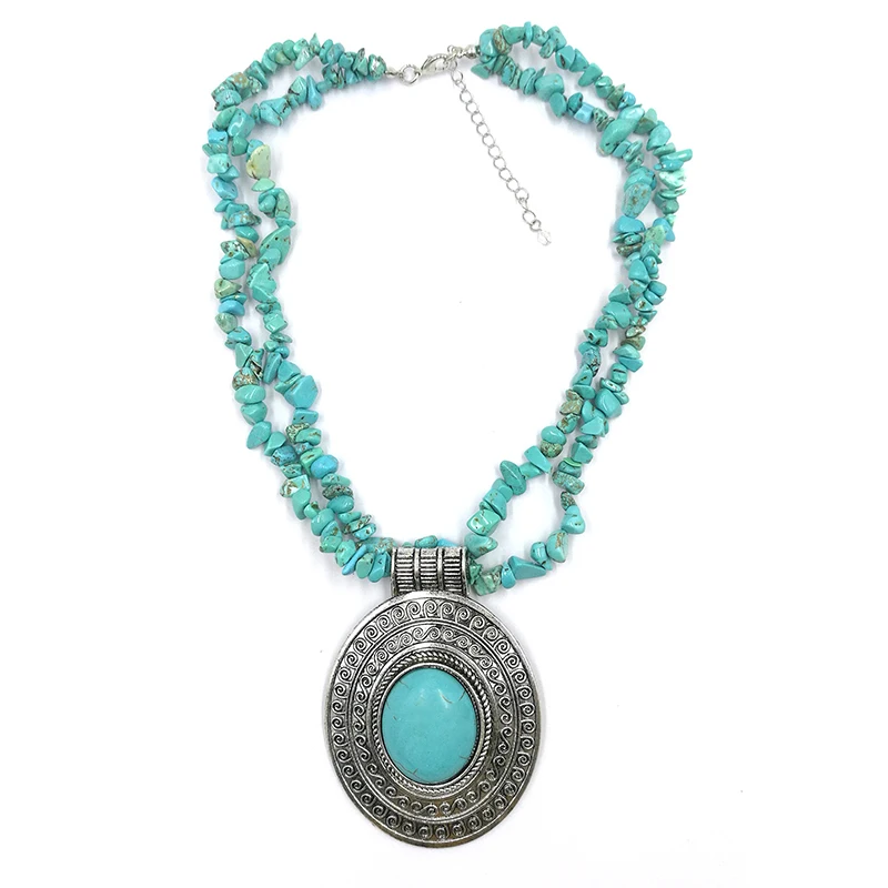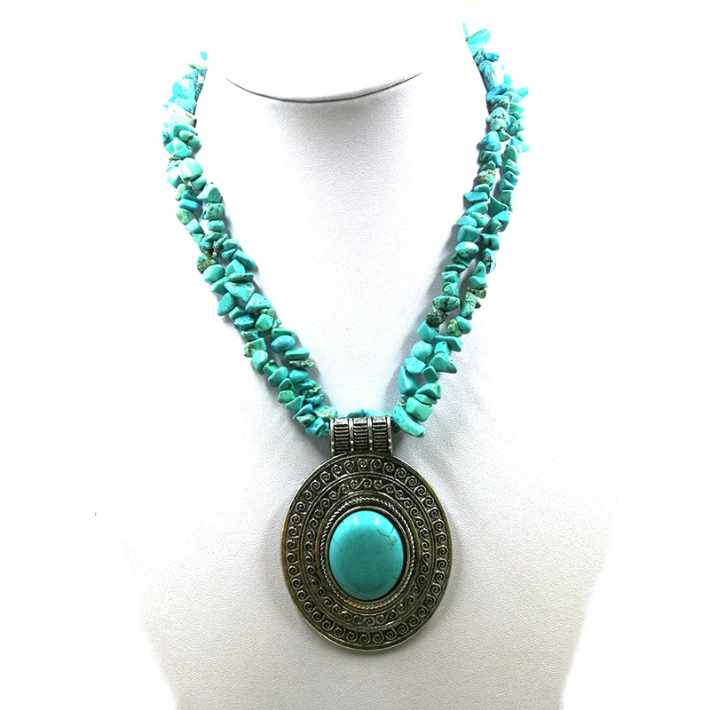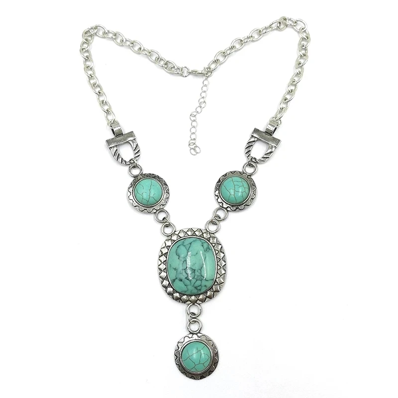 Don't miss out on this unique and stylish Turquoise necklace. With its vintage design, durable materials, and adjustable sizing, it is the perfect accessory for fashion-conscious women. Upgrade your jewelry collection with this one-of-a-kind necklace and make a statement wherever you go.
