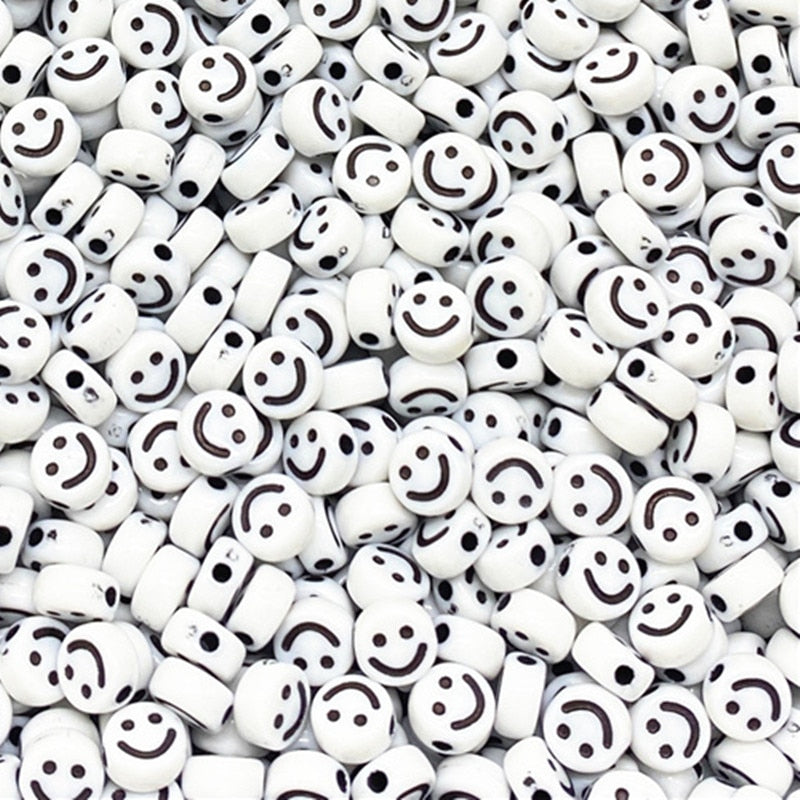 100pcs/Lot 7mm Oval Shape Acrylic Spaced Beads Smile Face Beads For Jewelry Making DIY Charms Bracelet Necklac