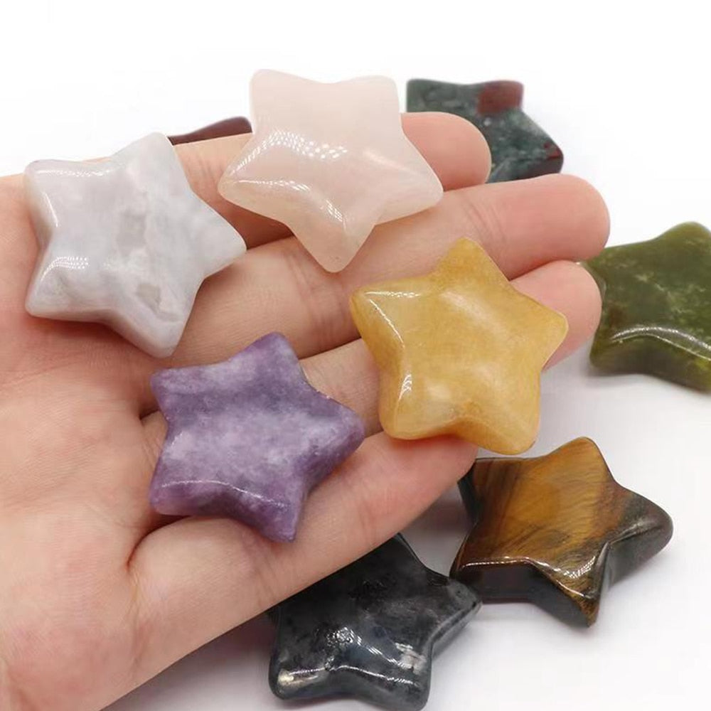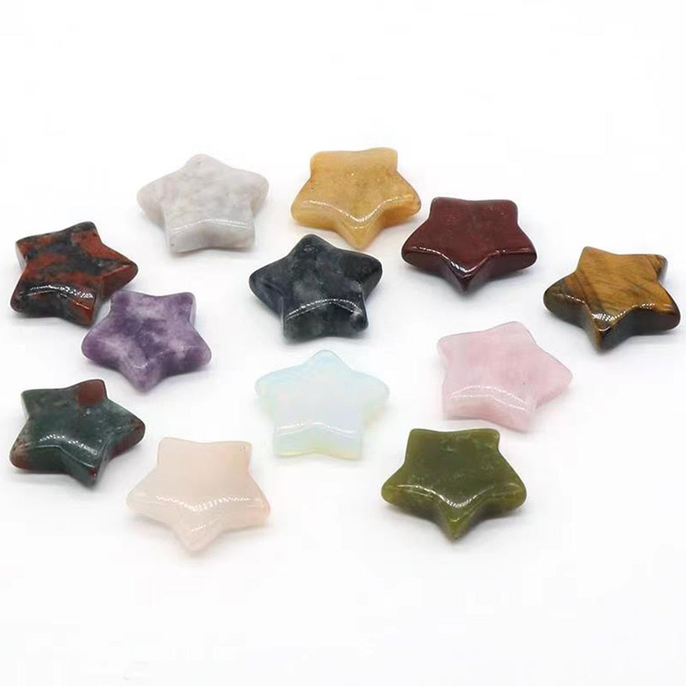 Whether you choose to place this mini ornament in your living room, bedroom, or office, its star pattern design adds a touch of celestial beauty to any setting. The intricate details of the pentagram symbolize the connection between the elements of nature, further enhancing the natural essence of the stones. This delicate interplay between the gemstones and the star pattern creates a captivating focal point, drawing the eye and sparking conversation.