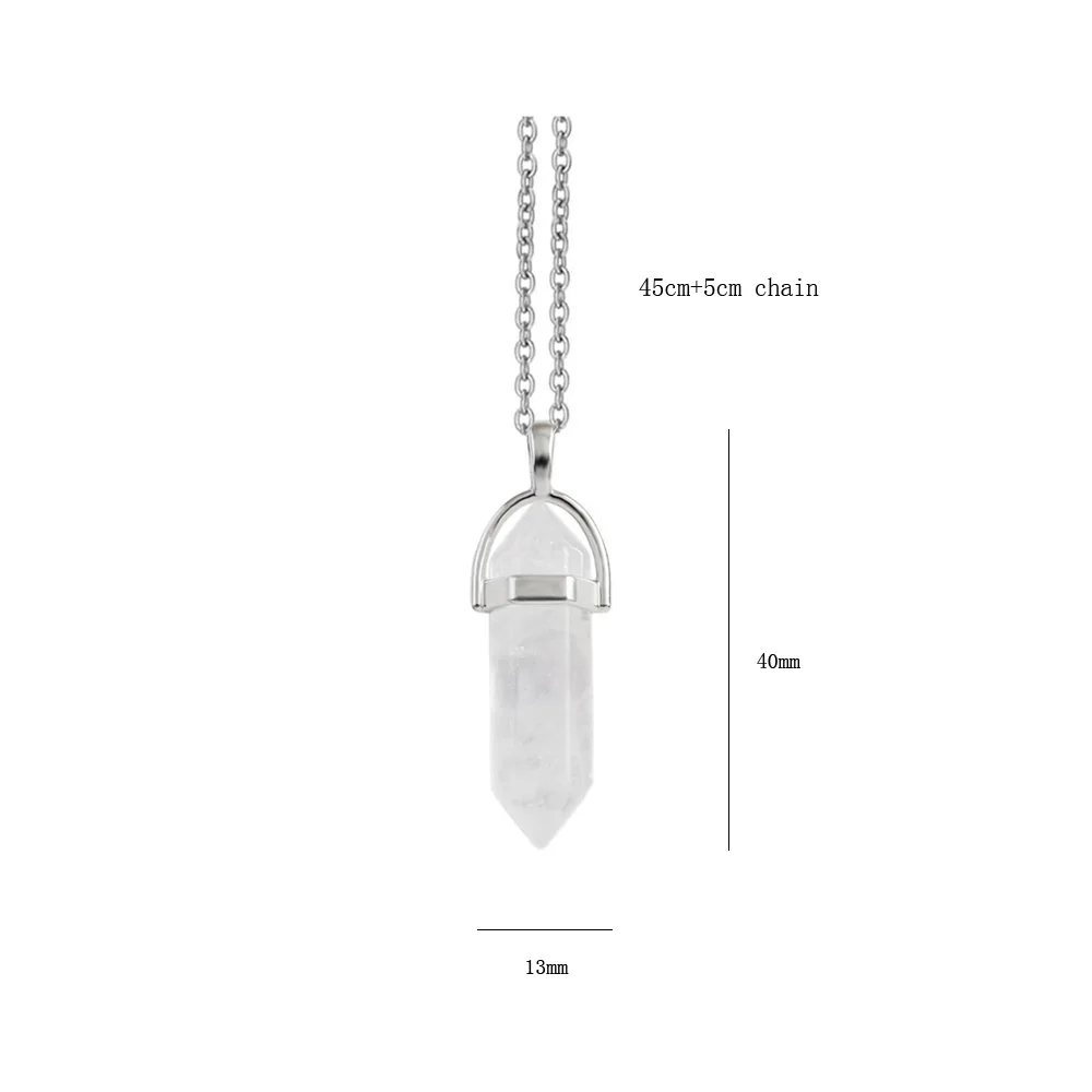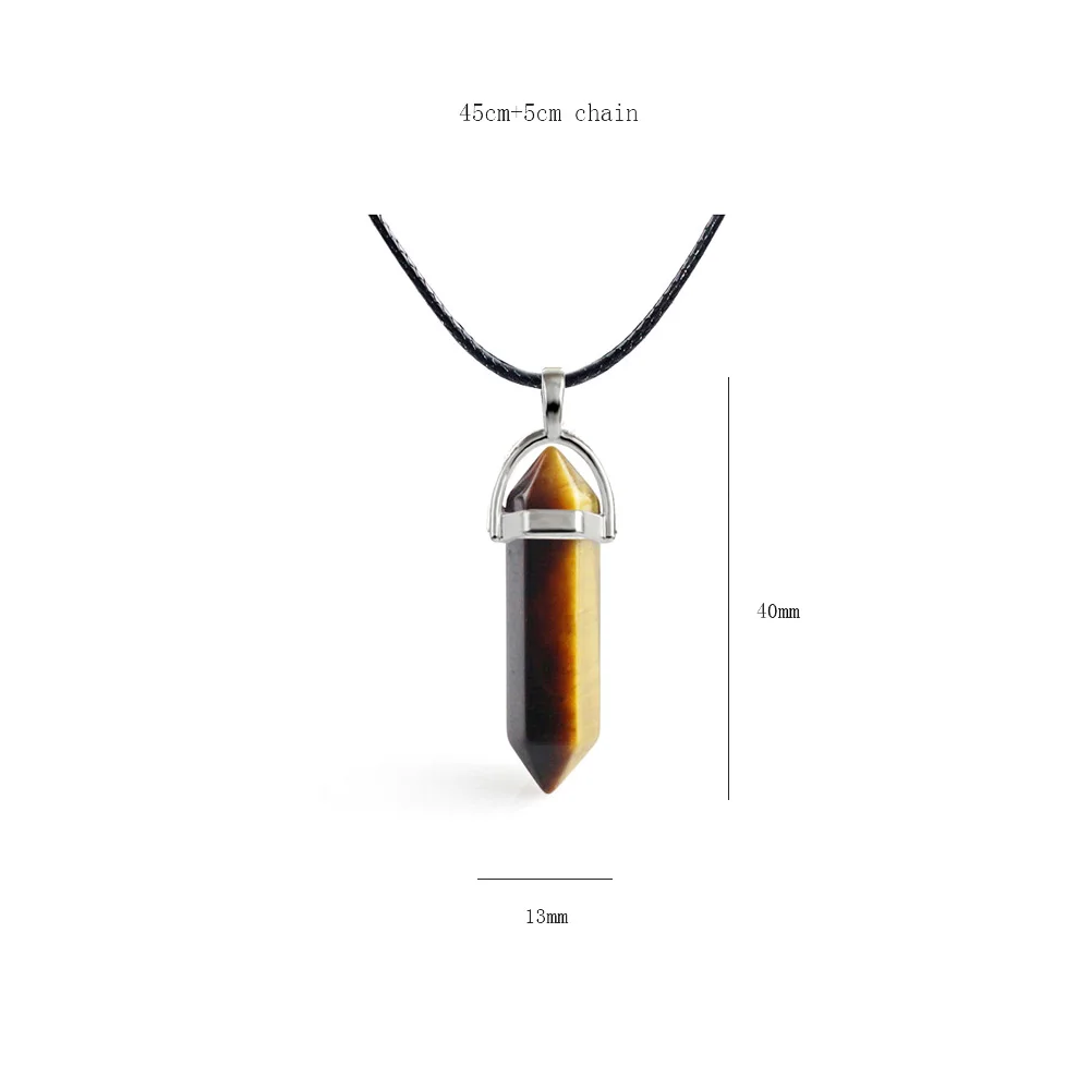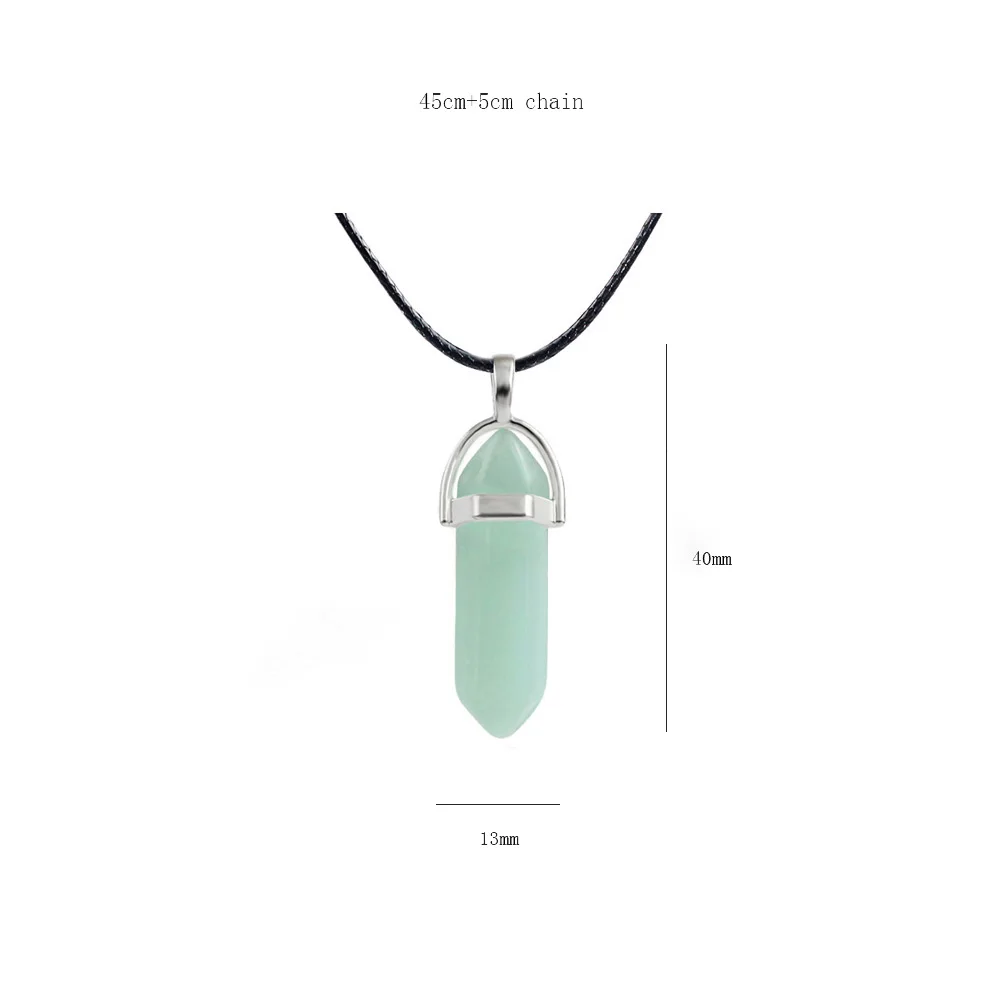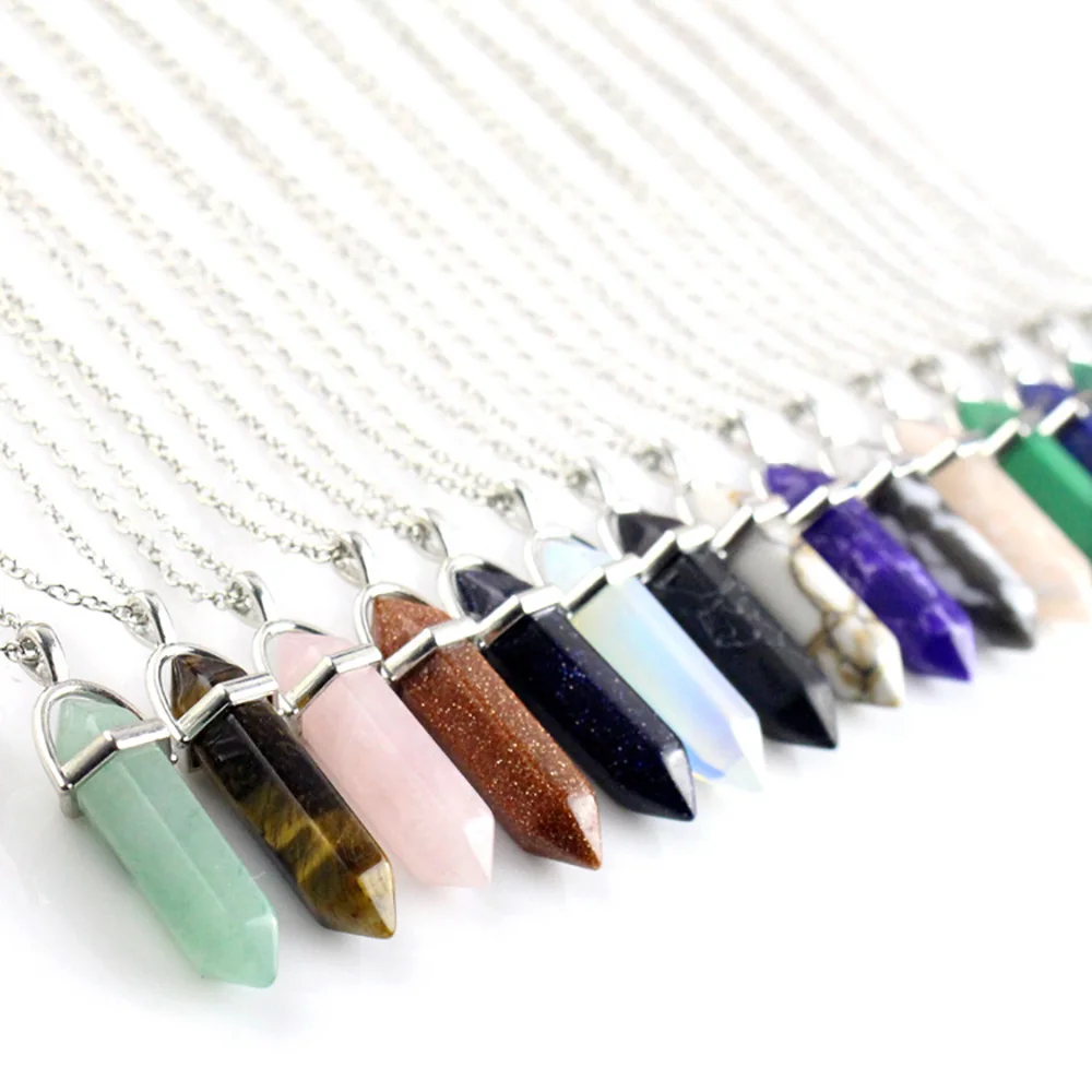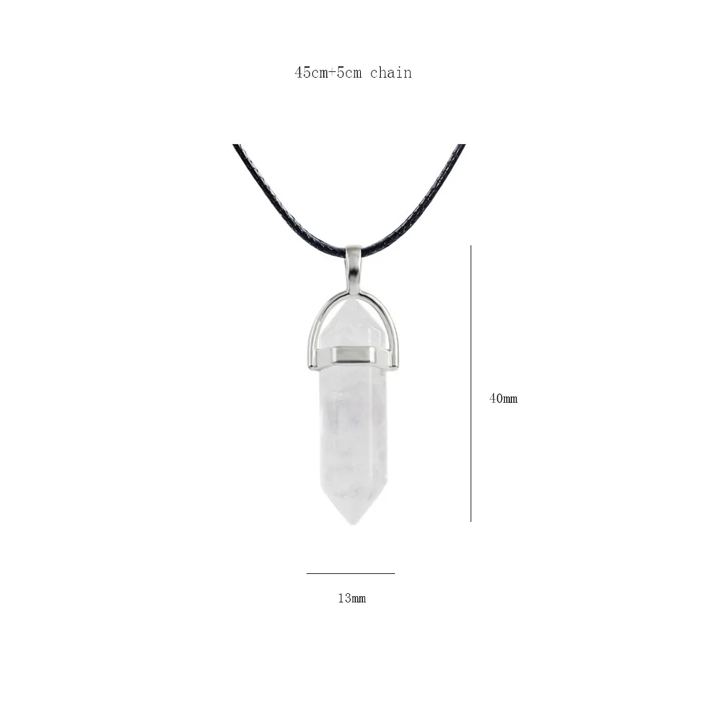 Point Pillar Bullet Hexagonal Column Pendant Necklace Natural Stone Quartz Crystal Chakra Necklace for Women Men with Chain