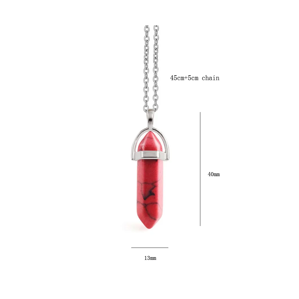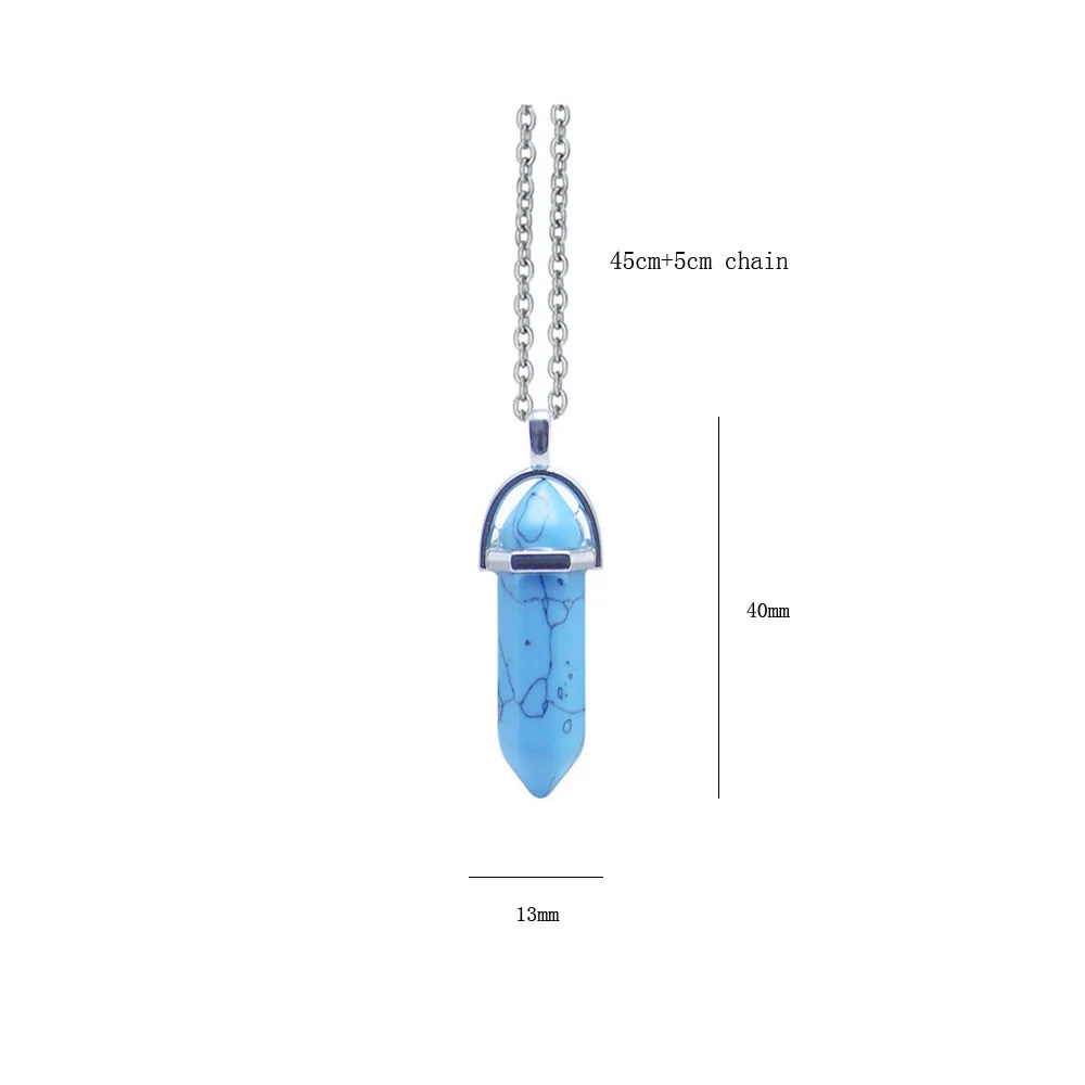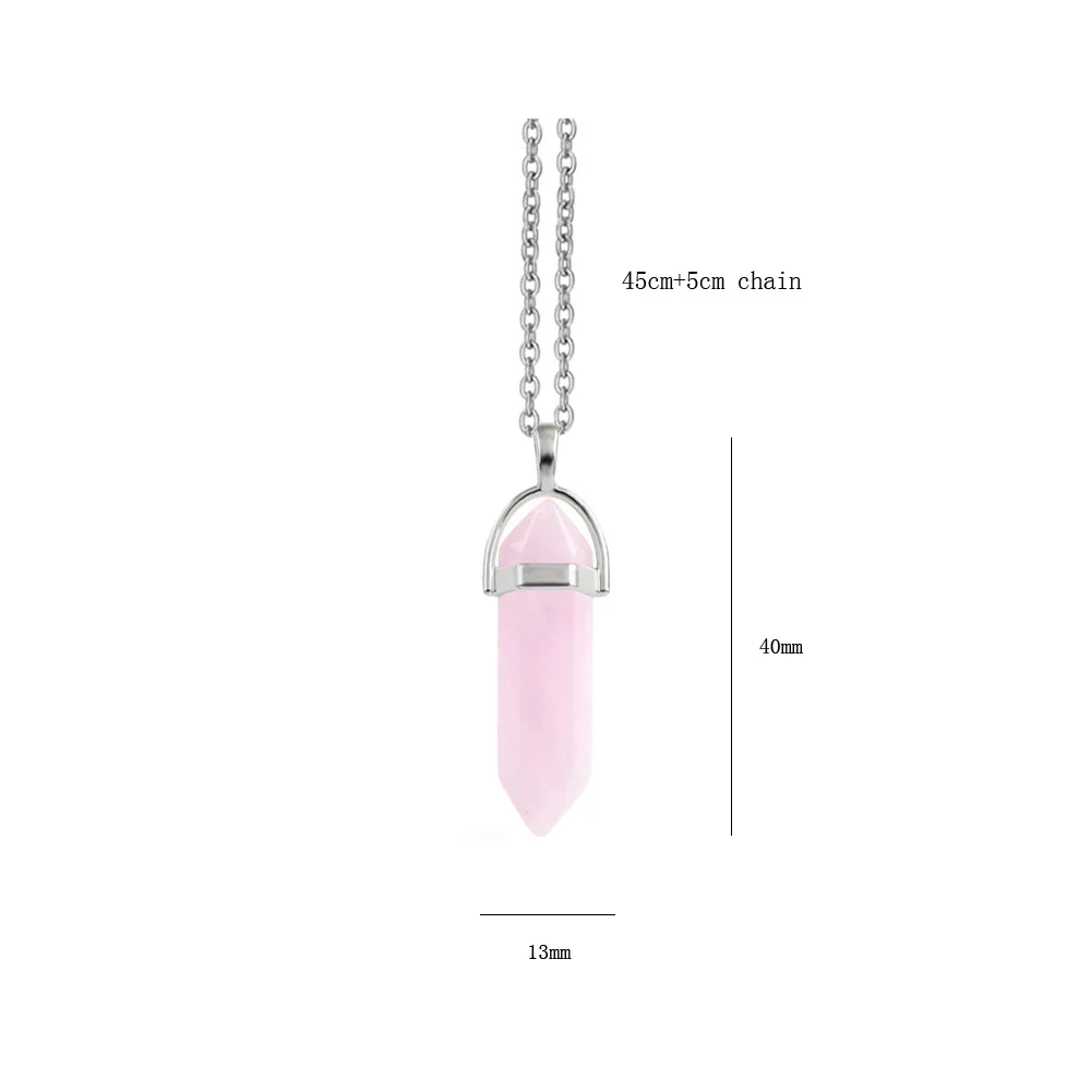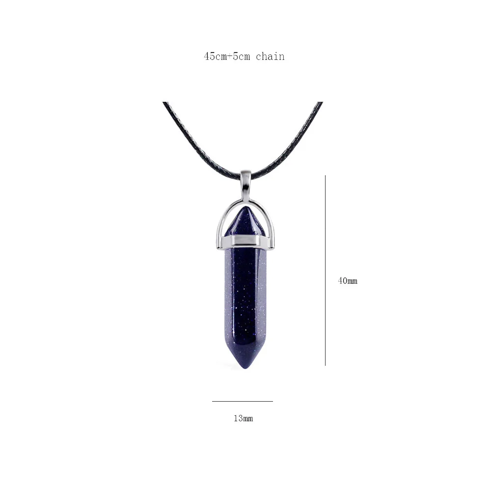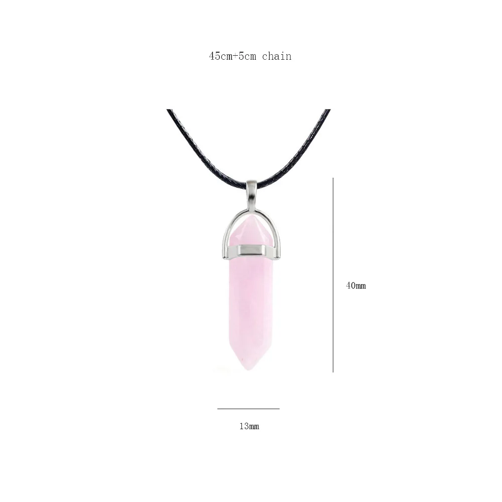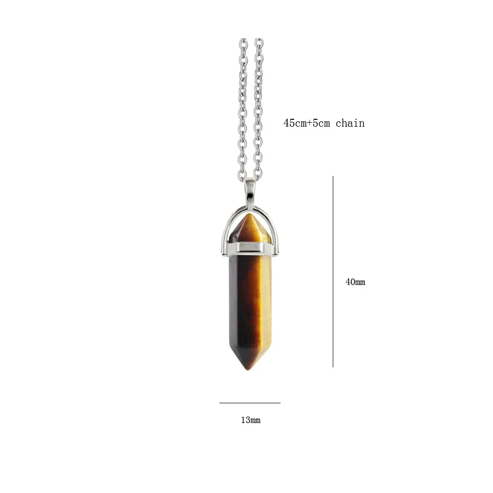 Point Pillar Bullet Hexagonal Column Pendant Necklace Natural Stone Quartz Crystal Chakra Necklace for Women Men with Chain