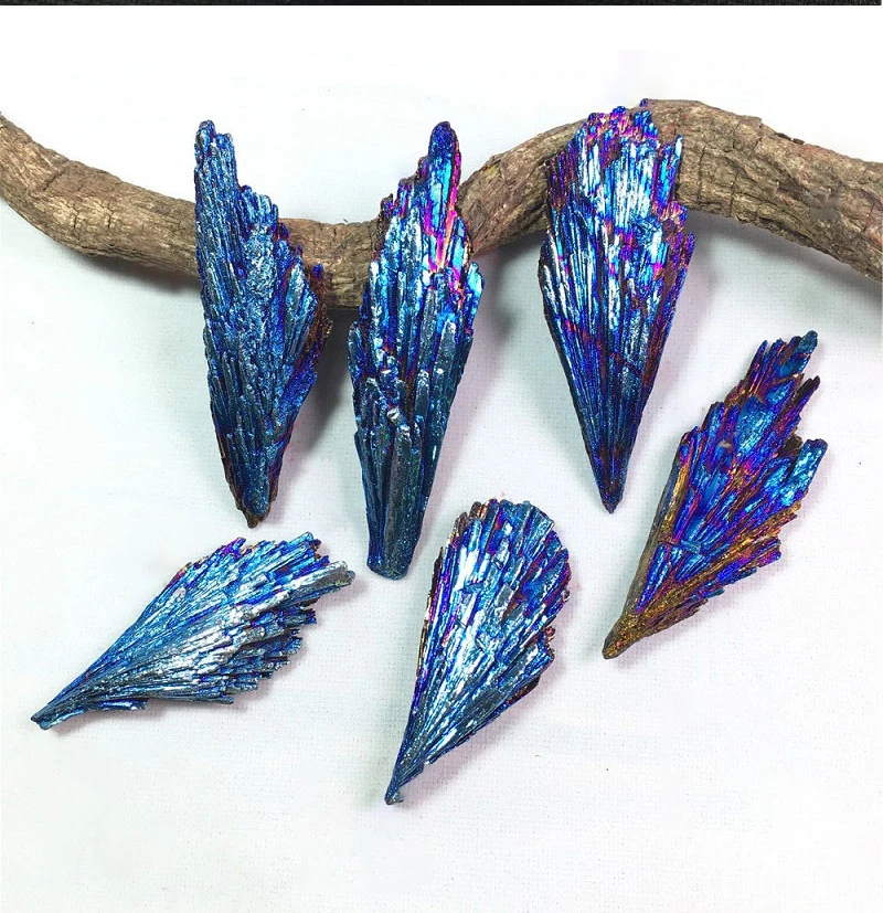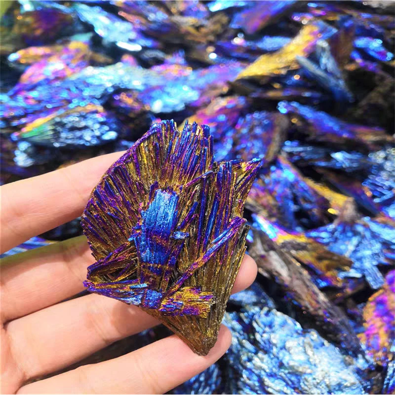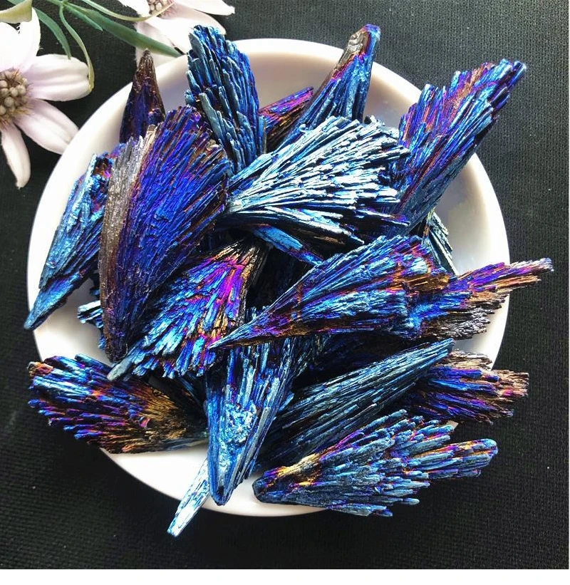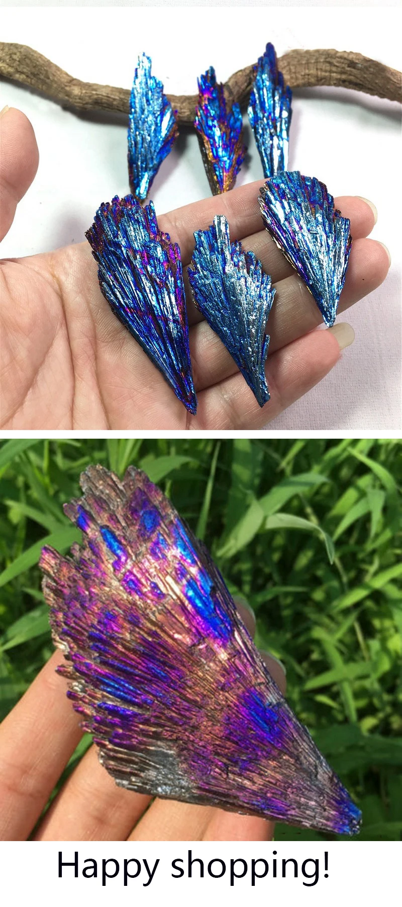 Natural Quartz Tourmaline Cluster Crystal Peacock Blue Feather Mineral Specimen Rainbow Reiki Healing Jet Stone for Decoration