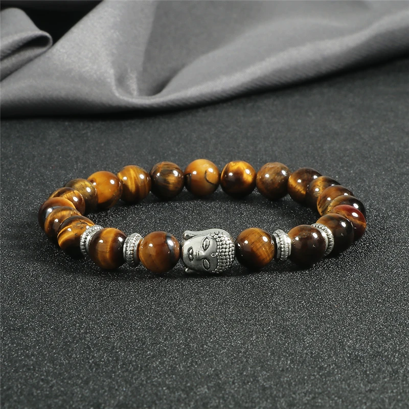 Reiki Tiger Eyes Beaded Buddha Bracelet Natural Stone Bracelet Elastic Rosary Men Women Prayer Charm Yoga Jewelry Gift Pulseras