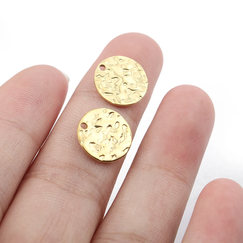 So why wait? Elevate your DIY jewelry game with our 10pcs Stainless Steel Gold Round Hammered Charms Earrings Pendant. Shop now and let your creativity shine!