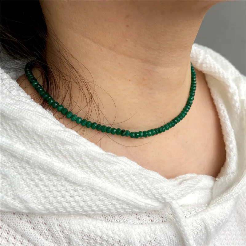 Simple Faceted Gemstons Necklaces For Women Jades Natural Stone Chokers Crystal Chain Handmade Necklace Jewelry Female Wholesale
