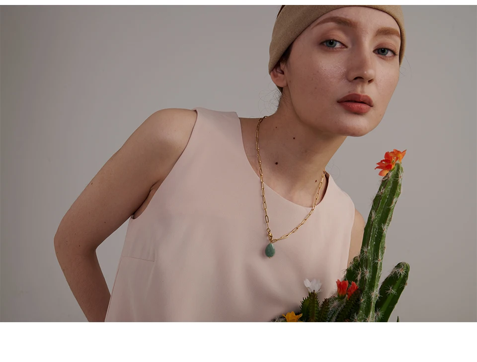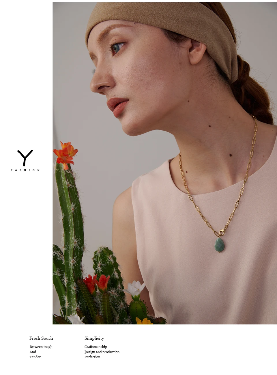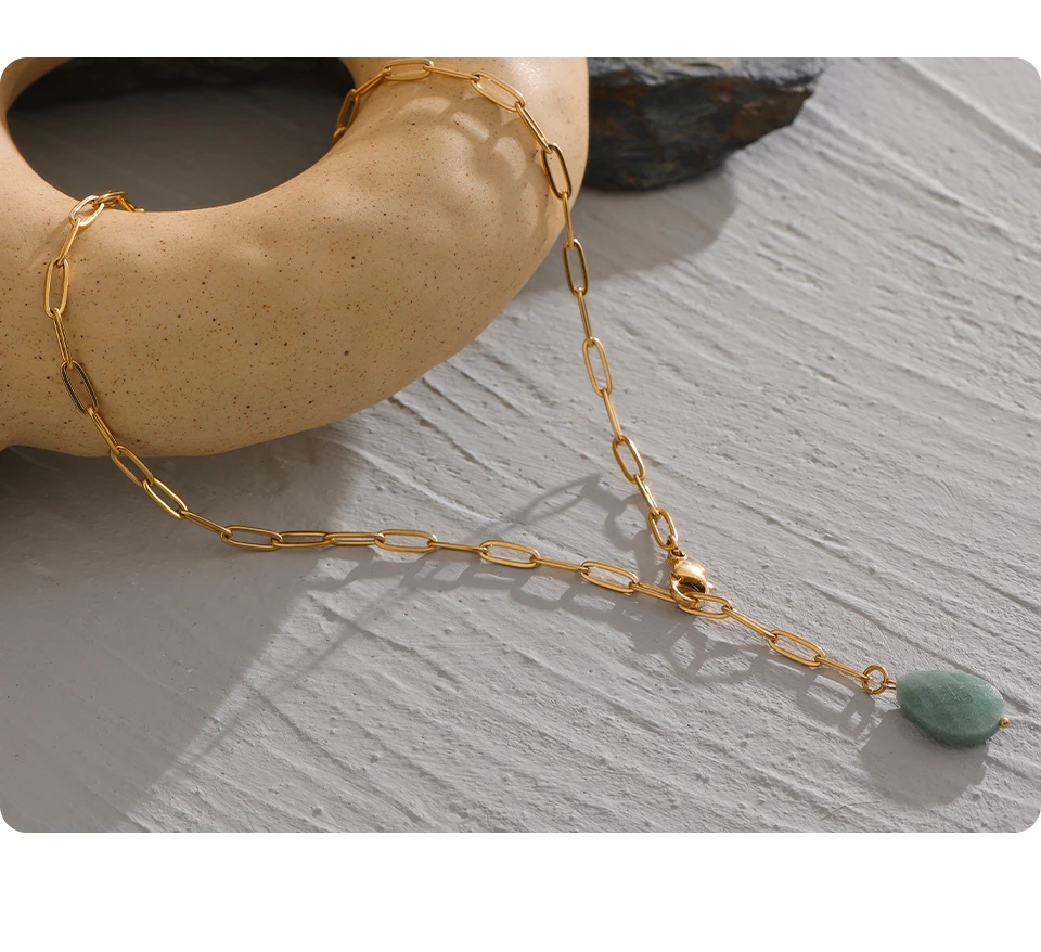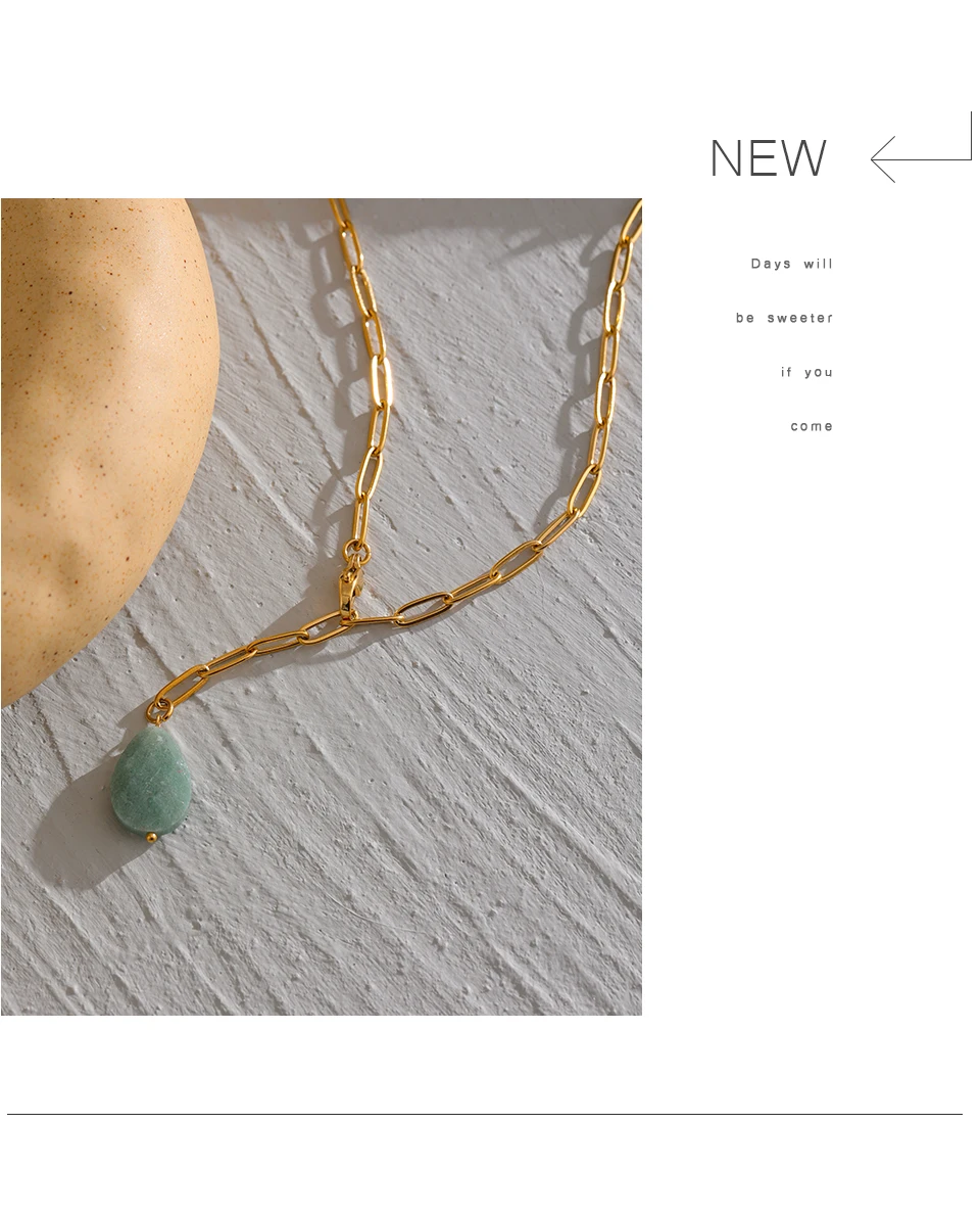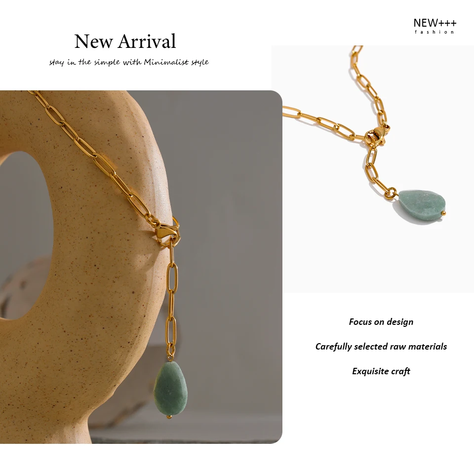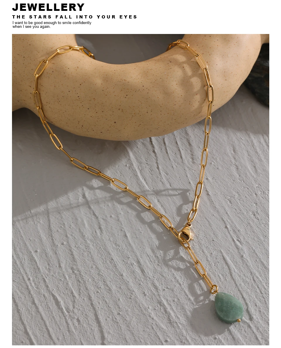 Yhpup Stainless Steel Natural Stone Agate Pendant Necklace Minimalist Metal Chain 18 K Women Collar Necklace Bijoux Femme New
