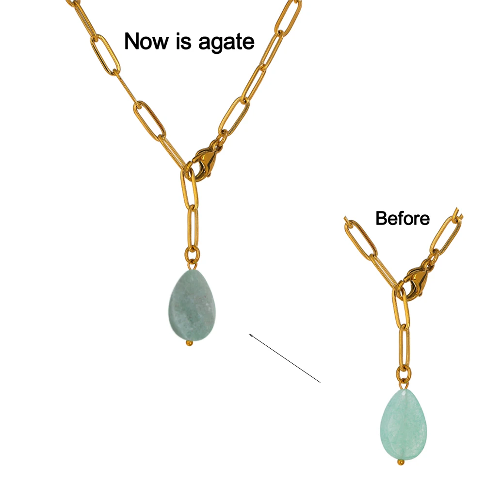 Introducing the Yhpup Stainless Steel Natural Stone Agate Pendant Necklace, a stunning piece of jewelry that combines minimalist design with elegance. Crafted with high-quality stainless steel and adorned with a beautiful natural stone agate pendant, this necklace is perfect for women who want to make a statement.