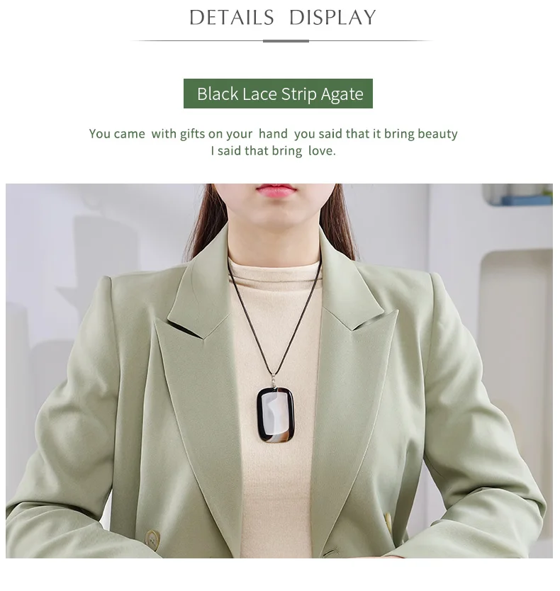 In conclusion, the JD Natural Stone Black Agates Pendant Necklace is a must-have fashion accessory that combines style, symbolism, and durability. Its trendy design, crafted with high-quality materials, ensures that it will remain a timeless piece in your collection. Elevate your fashion game and experience the positive energy and balance that this necklace brings. Get yours today and enjoy the beauty and significance of this stunning piece of jewelry.