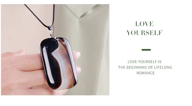 Introducing the JD Natural Stone Black Agates Pendant Necklace, a fashionable and trendy accessory for both women and men. This stunning necklace features beautiful stripes of carnelian, polished to perfection, and set in a zinc alloy pendant. Crafted with semi-precious stones, this necklace is not only stylish but also holds deep meaning and energy.